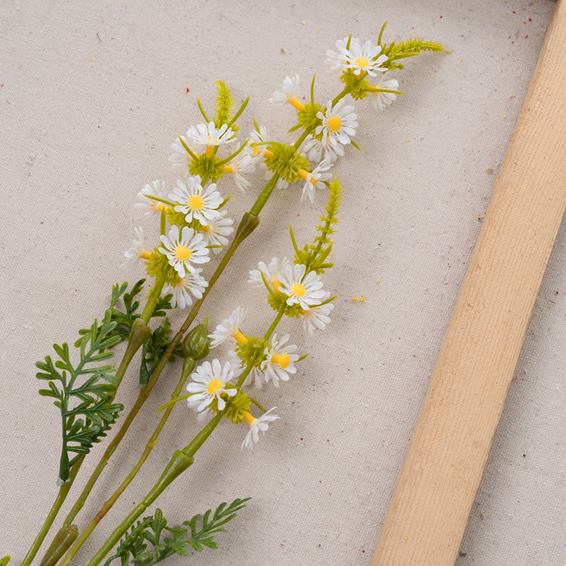 At the heart of the DY1-7308 lies its intricate design, featuring three elegantly curved prongs that gracefully support an array of Daisy flowers and matching leaves. Each flower and leaf is crafted with meticulous attention to detail, blending the warmth of handmade craftsmanship with the efficiency of machine-aided precision. The end result is a piece that exudes a sense of life and vitality, as if the Daisies were plucked straight from a summer meadow.