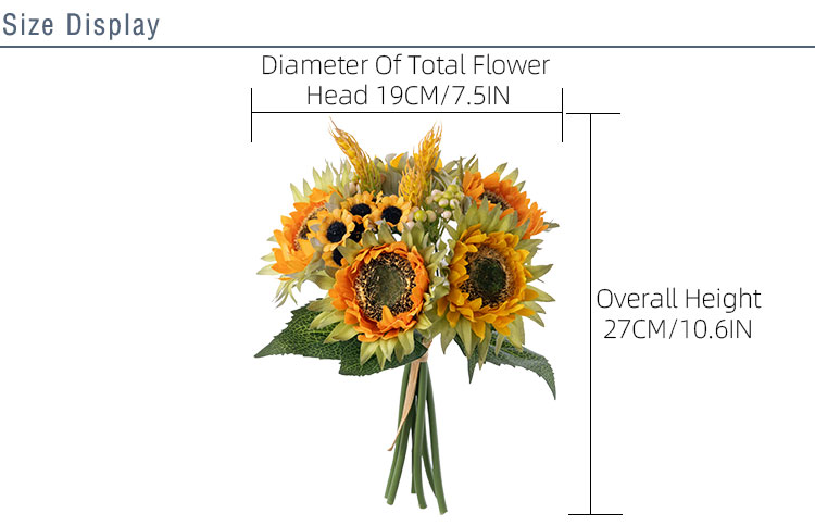 With a modern style, the GF13396 flowers effortlessly blend into any contemporary setting. Their vibrant colors and lifelike appearance bring a refreshing energy to the surroundings. The newly designed sunflowers catch the eye and instantly uplift the mood of any space.CALLAFLORAL GF13396 decorative flowers are a must-have for those seeking to add a touch of modern elegance to their special occasions. Crafted with high-quality materials and a combination of handcrafting and machine manufacturing techniques, these giant artificial sunflowers offer durability and exquisite detail.