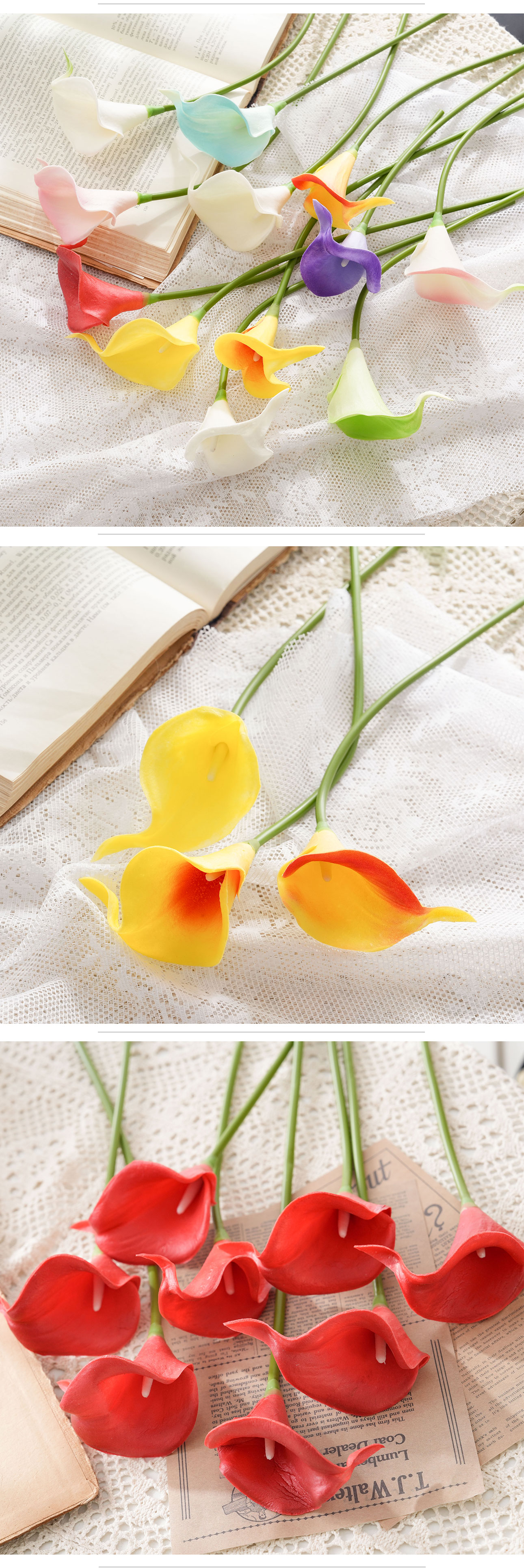 MW01501 Real Touch PU Calla Lily Stems Artificial Flowers Arrangements Wedding Bouquets