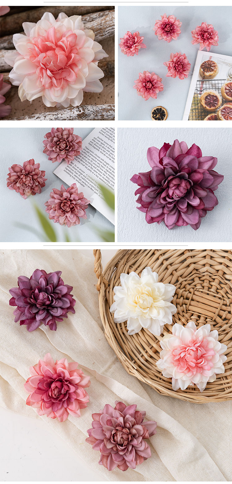 Each flower head is crafted with meticulous attention to detail, ensuring that it will stand out among your floral displays.Our versatile Dahlia flower heads are perfect for any occasion. Whether you want to bring a touch of nature to your home, create a romantic ambiance for a wedding, or add a pop of color to your office space, these flower heads are the perfect choice. They can be used in a variety of settings, including bedrooms, hotels, hospitals, shopping malls, and more.
