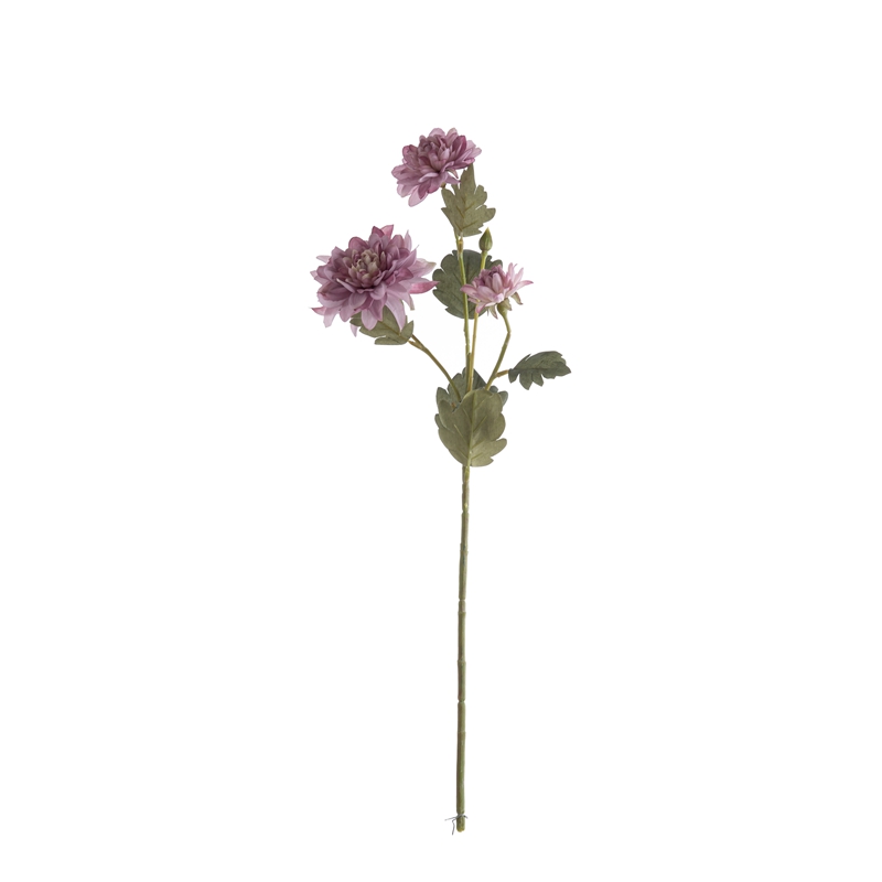 One branch of the 3 Dahlias arrangement consists of one large flower head, one small flower head, one flower bud, and a combination of leaves. This thoughtful combination creates a harmonious and realistic appearance, adding a touch of beauty to any space.