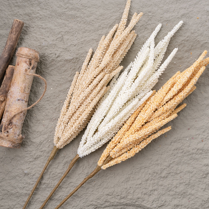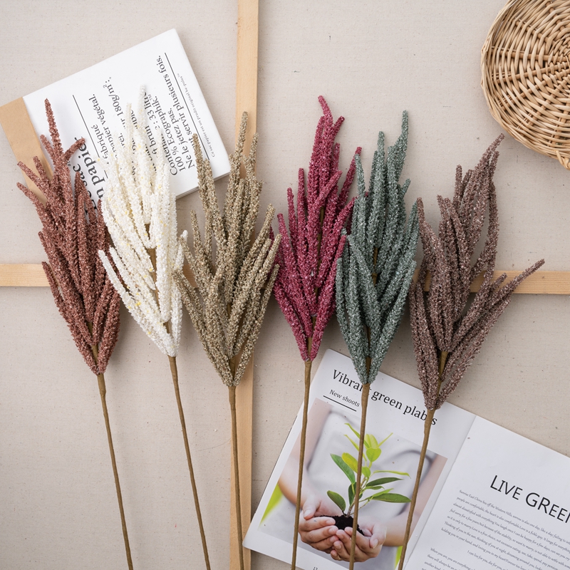 The Dry Grain Single Branch is available in nine elegant colors, including Blue,Brown,Champagne,Dark Brown,Ivory,Light Brown,Rose Red,White,Yellow Green. Each color is carefully selected to add vibrancy and elegance to any occasion or setting, allowing for endless creative possibilities.