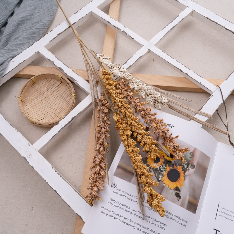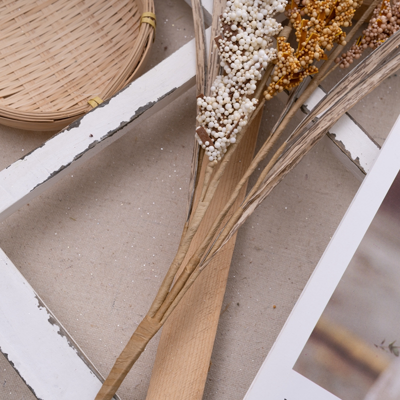 Available in two sophisticated colors, Light Brown and Dark Brown, the 5 Head Foamed Anchovies Single Branch allows you to personalize your decor and create a customized ambiance that reflects your style. Whether used as standalone pieces or combined with other floral arrangements, they bring a touch of natural beauty to any setting.