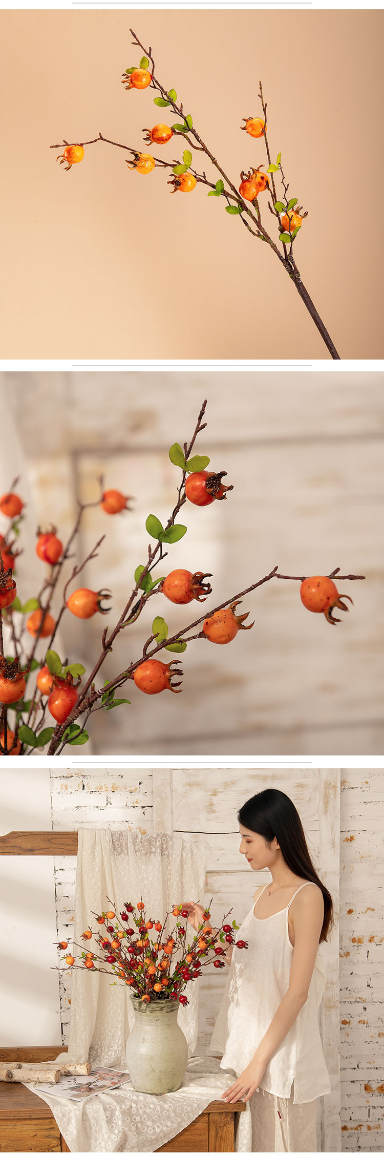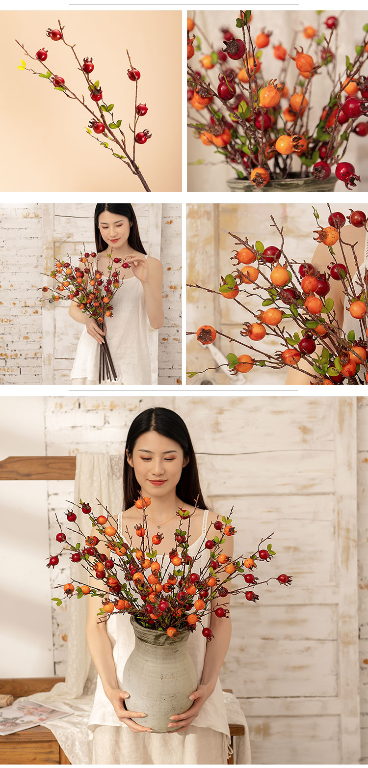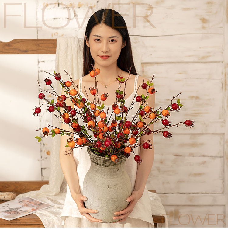MW10888 New Design Artificial Plant Fruit 63cm Nine Head Pomegranate Branch Expandable Polystyrene Material Home Decoration