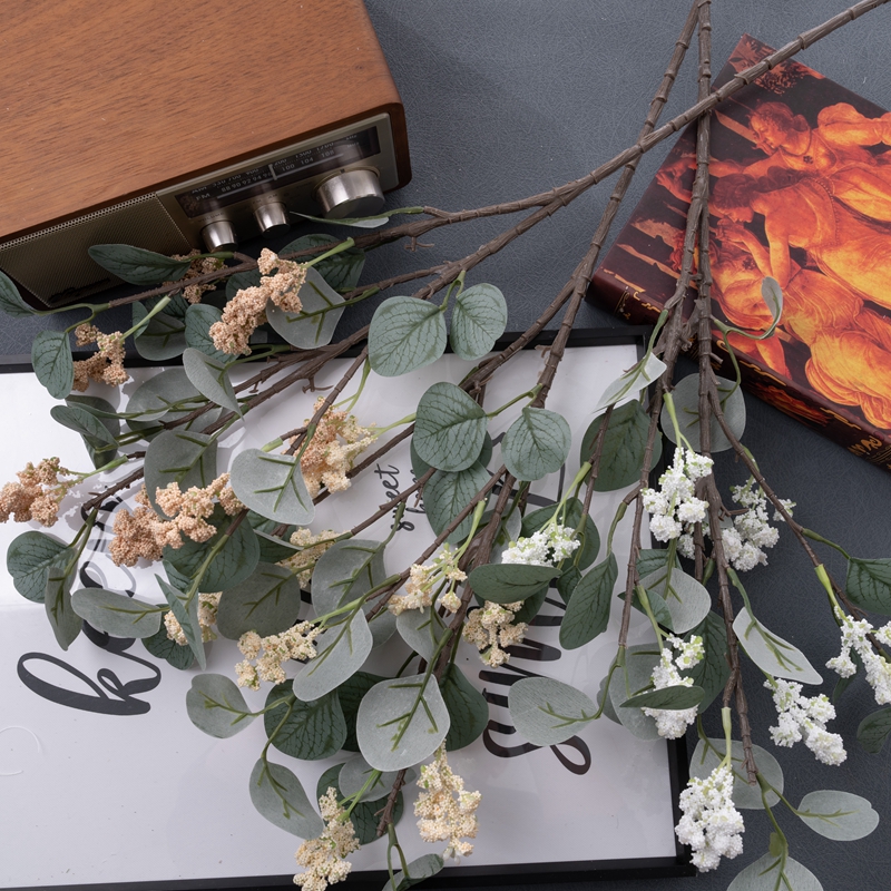 The Short Branch, Small Flower, Money Leaf is available in three elegant colors: Ivory, Beige, and White. This allows you to choose the color that best complements your decor and personal style. Whether you're decorating your home, bedroom, hotel, hospital, shopping mall, wedding venue, or organizing an exhibition, this floral arrangement is the perfect choice.