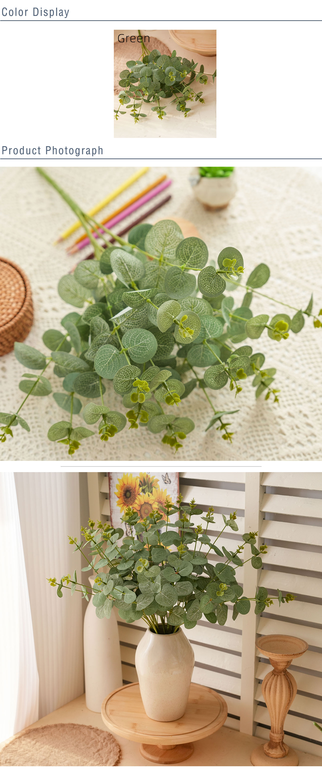 When it comes to adding a touch of natural elegance and modern charm to any space or event, the newly designed artificial eucalyptus leaves from CALLA FLOWER are an exceptional choice. Originating from China, this high-quality decorative piece Model Number MW16301 combines meticulous craftsmanship with eco friendly materials, making it a versatile and sustainable option for countless occasions.
