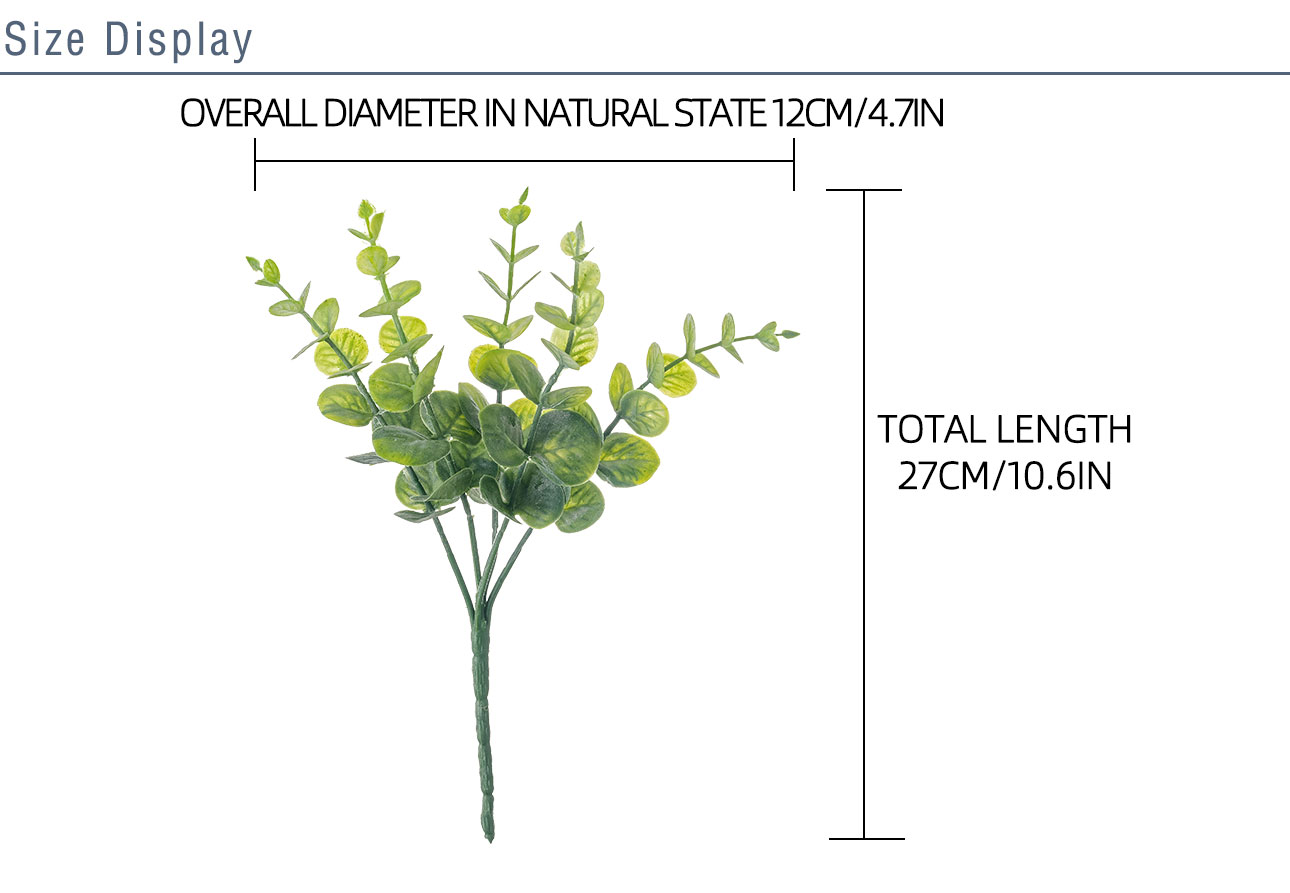 Crafted with meticulous attention to detail, these preserved flowers and plants boast a unique combination of handmade artistry and machine precision. The use of high-quality soft glue as the primary material not only ensures a realistic texture that mimics natural eucalyptus leaves but also guarantees durability for long-term use. Measuring 83*33*18 cm in overall size with a height of 27 cm and a lightweight design of just 16.6 grams, they are easy to handle, arrange, and store, making them ideal for both professional decorators and DIY enthusiasts.