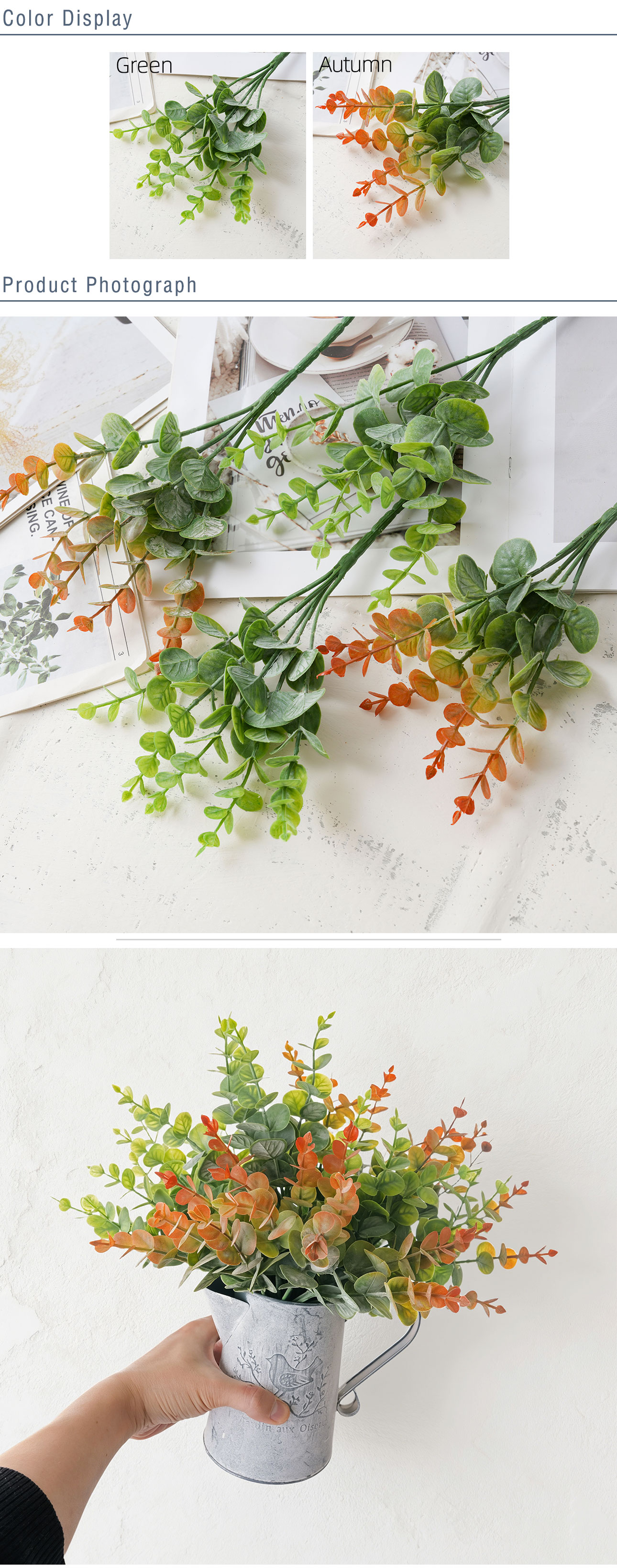 In conclusion, CALLAFLORAL’s artificial eucalyptus leaves Model MW20202 are more than just decorations – they are a perfect blend of quality, style, sustainability, and versatility. Originating from Shandong, China, this thoughtfully crafted product caters to the diverse needs of consumers, providing a reliable and aesthetically pleasing solution for all your decorating needs. Whether you’re celebrating a major holiday or simply want to add a touch of nature to your daily life, these artificial eucalyptus leaves are sure to impress with their beauty and functionality.