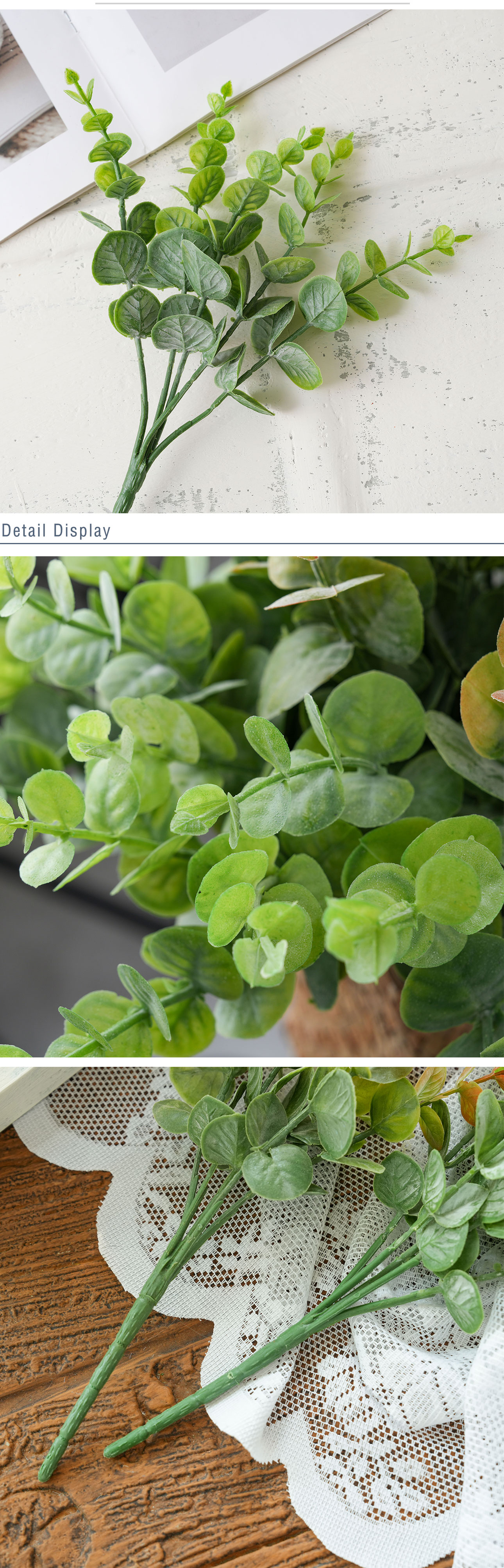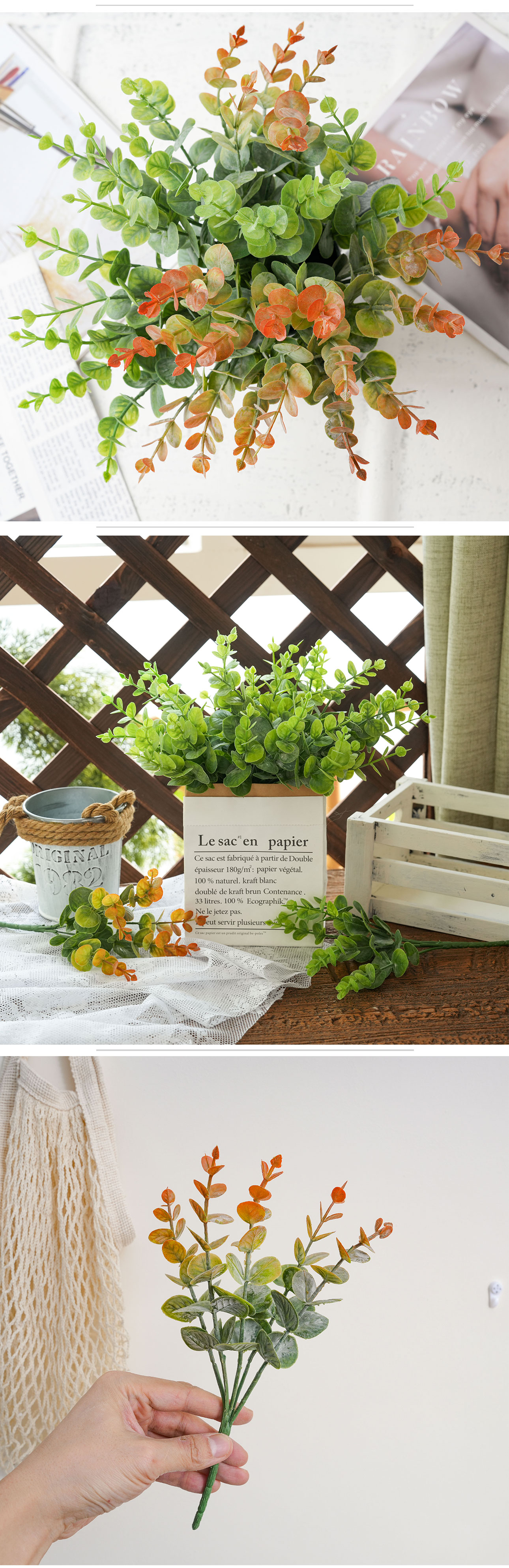 Embracing the popular INS style, these artificial eucalyptus leaves exude a minimalist yet elegant charm that complements a wide range of decor themes. Whether you’re planning a romantic wedding, a lively party, or adding a touch of nature to your home, they seamlessly integrate into any setting, enhancing the visual appeal with their soft green hues and lifelike appearance. The newly designed structure further elevates their aesthetic value, making them a trendy addition to any space.