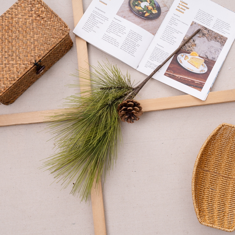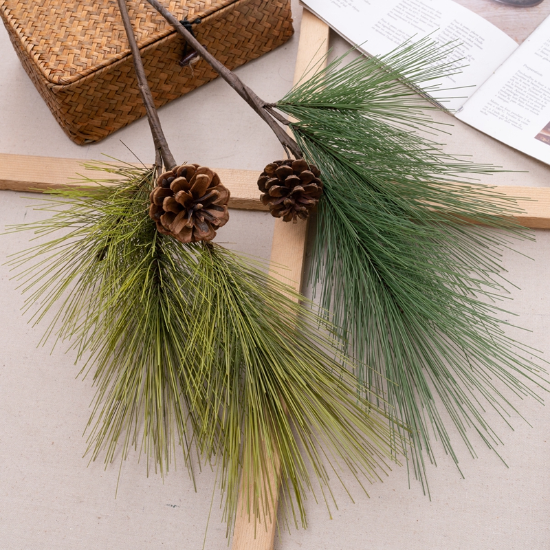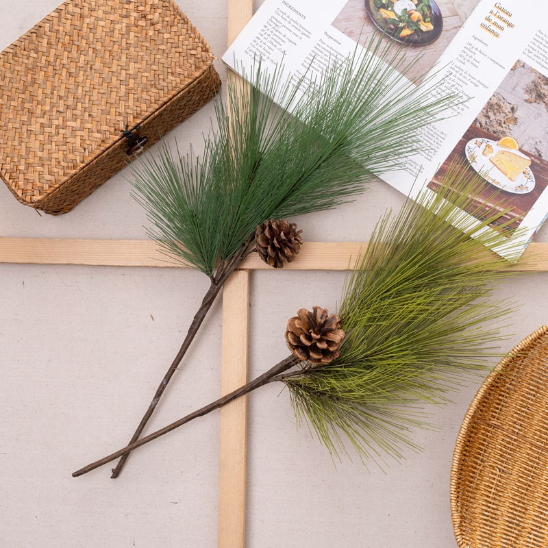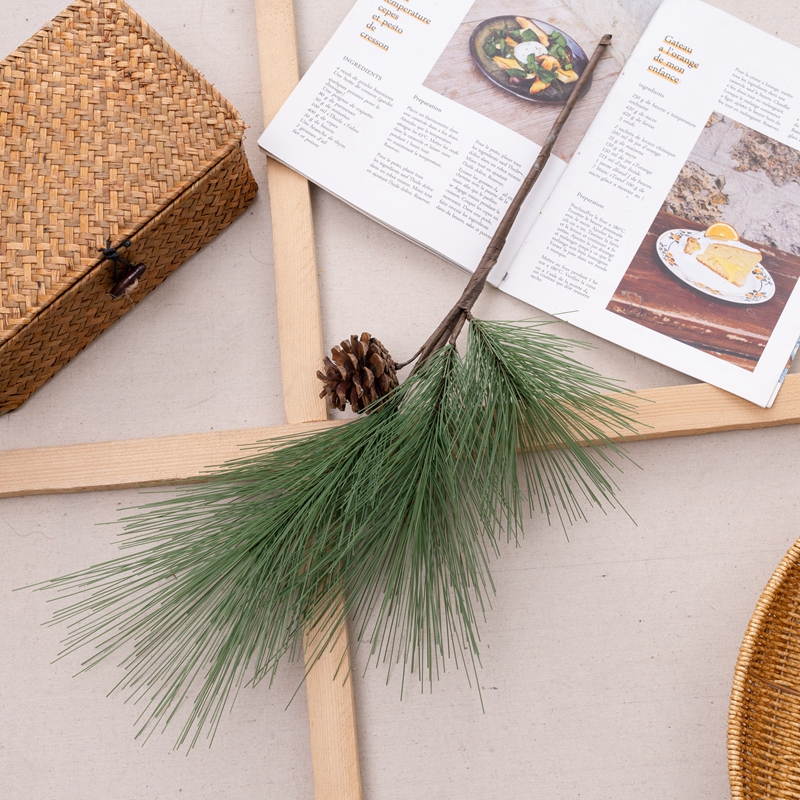 Combining handmade craftsmanship with advanced machine techniques, each Long Pine Needle Sprig is meticulously crafted to replicate the intricate details of real pine needles and cones, ensuring a lifelike appearance that will captivate all who behold them.