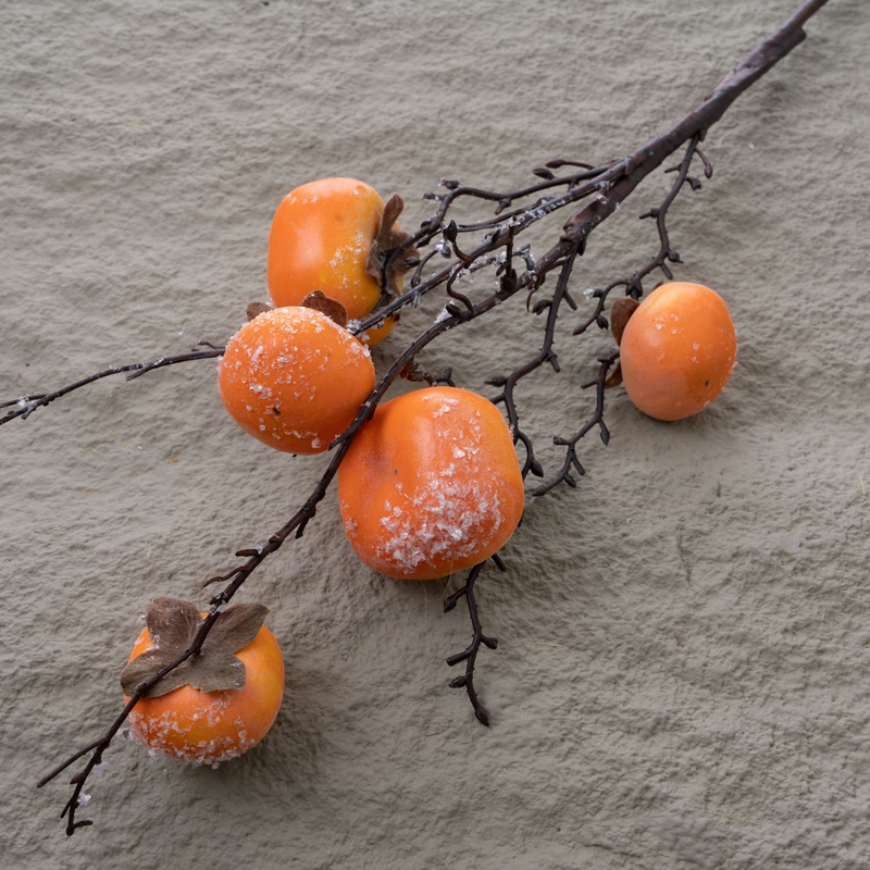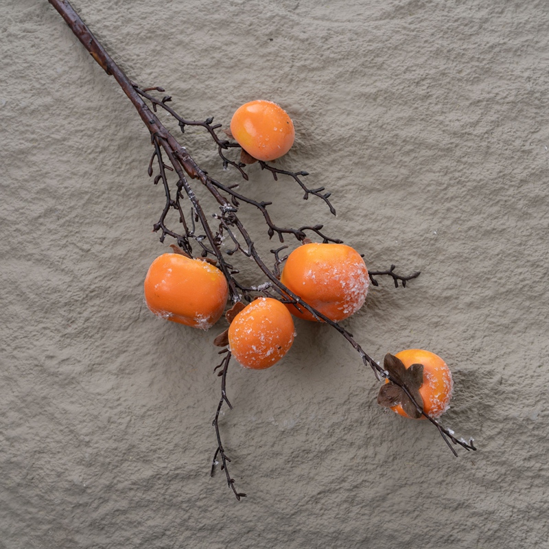 This artistic masterpiece, titled "Drop Persimmons with Snow," is a delightful symphony of nature's dual seasons, beautifully encapsulated in a single, stunning decoration. Hailing from the fertile lands of Shandong, China, CALLAFLORAL has once again proven its mastery in crafting nature-inspired decor that transcends the ordinary, transforming everyday spaces into veritable works of art.