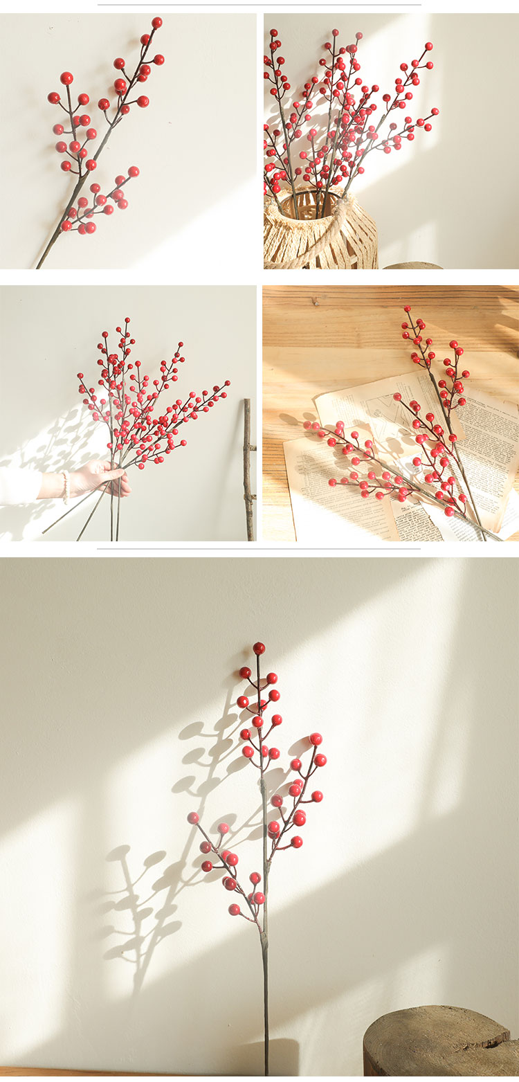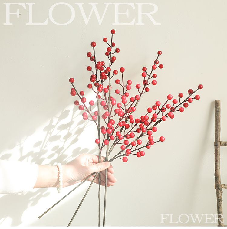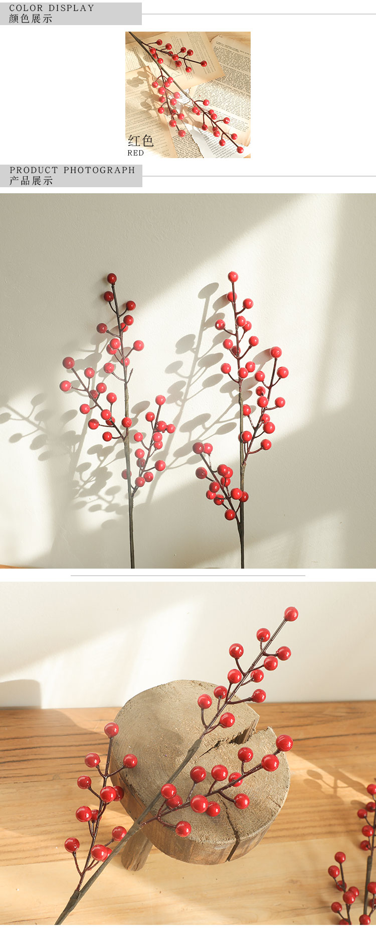 MW36893 Christmas Red Decorative Berry Artificial Long Stem Foam Berries Picks For Home Decoration