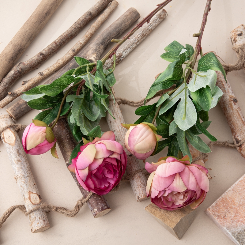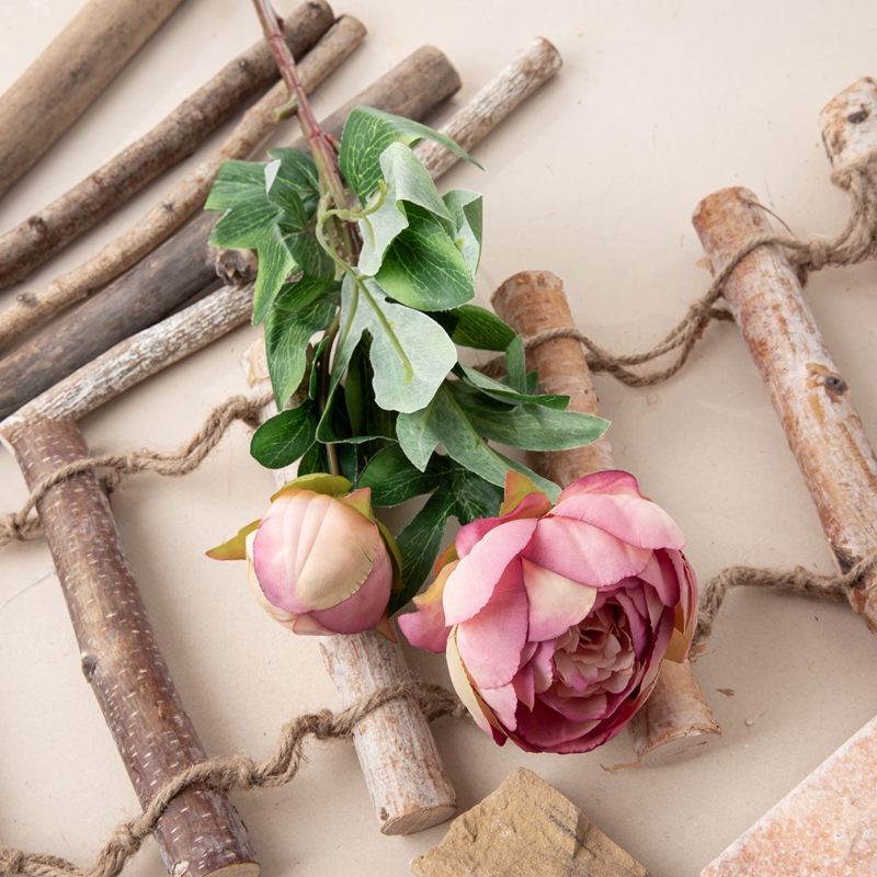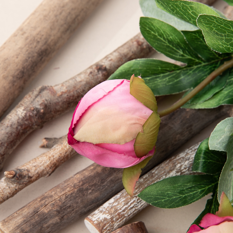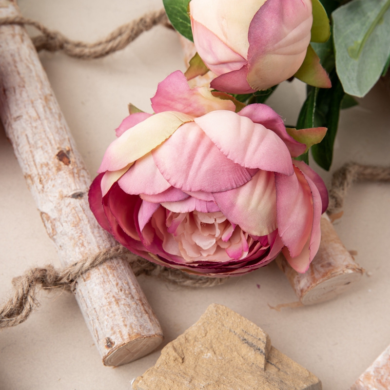 Each branch consists of one peony flower head, one peony bud, and several leaves, meticulously arranged to create a lifelike composition. The peony flower head boasts a height of 5.2cm and a diameter of 9cm, while the peony bud stands at 5.5cm in height with a diameter of 5cm.