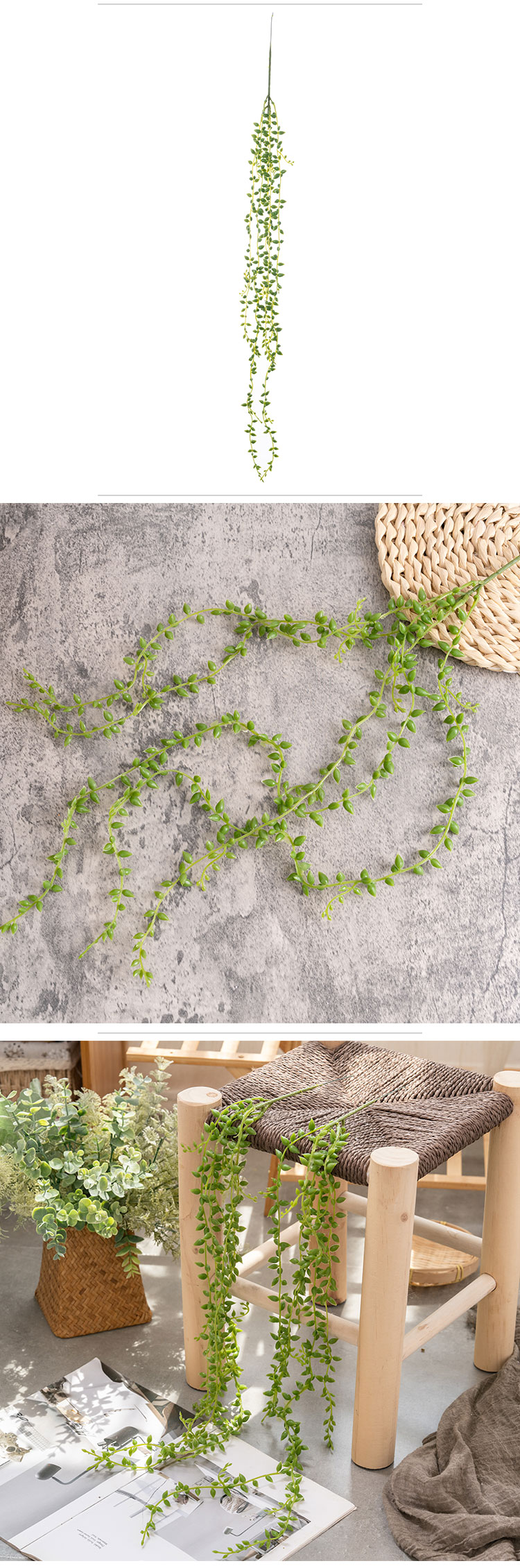 This European-style decorative flower and wreath is a combination of machine and handmade techniques, ensuring that each piece is crafted with care and attention to detail. The artificial succulent vine is colored in green, giving it a natural and realistic appearance. Plus, it is eco-friendly, making it a great choice for those who are environmentally conscious.In summary, if you want to add a touch of sophistication and beauty to your space while also being eco-friendly, the CALLA FLORAL artificial succulent vine is a great option to consider. Its stunning design and high-quality materials make it a perfect choice for any occasion or location.