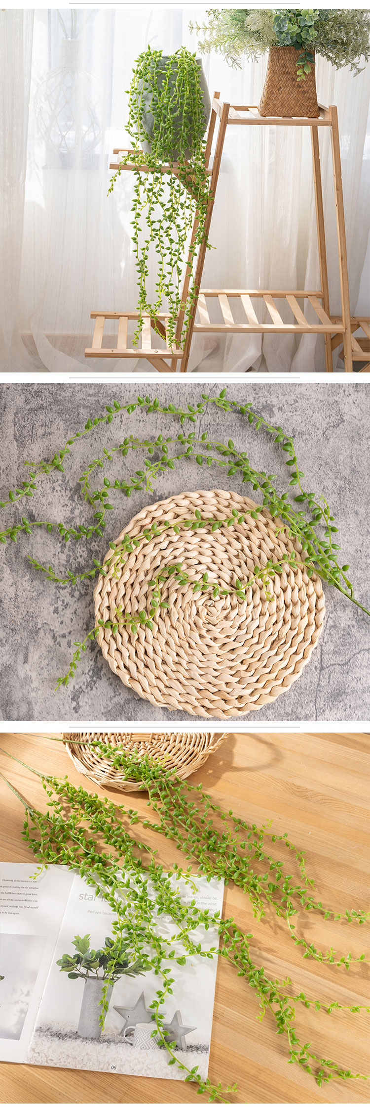 MW53466 Hanging Wall Plastic Artificial Succulents Beads Green Vines Lover Tears Succulent Plants