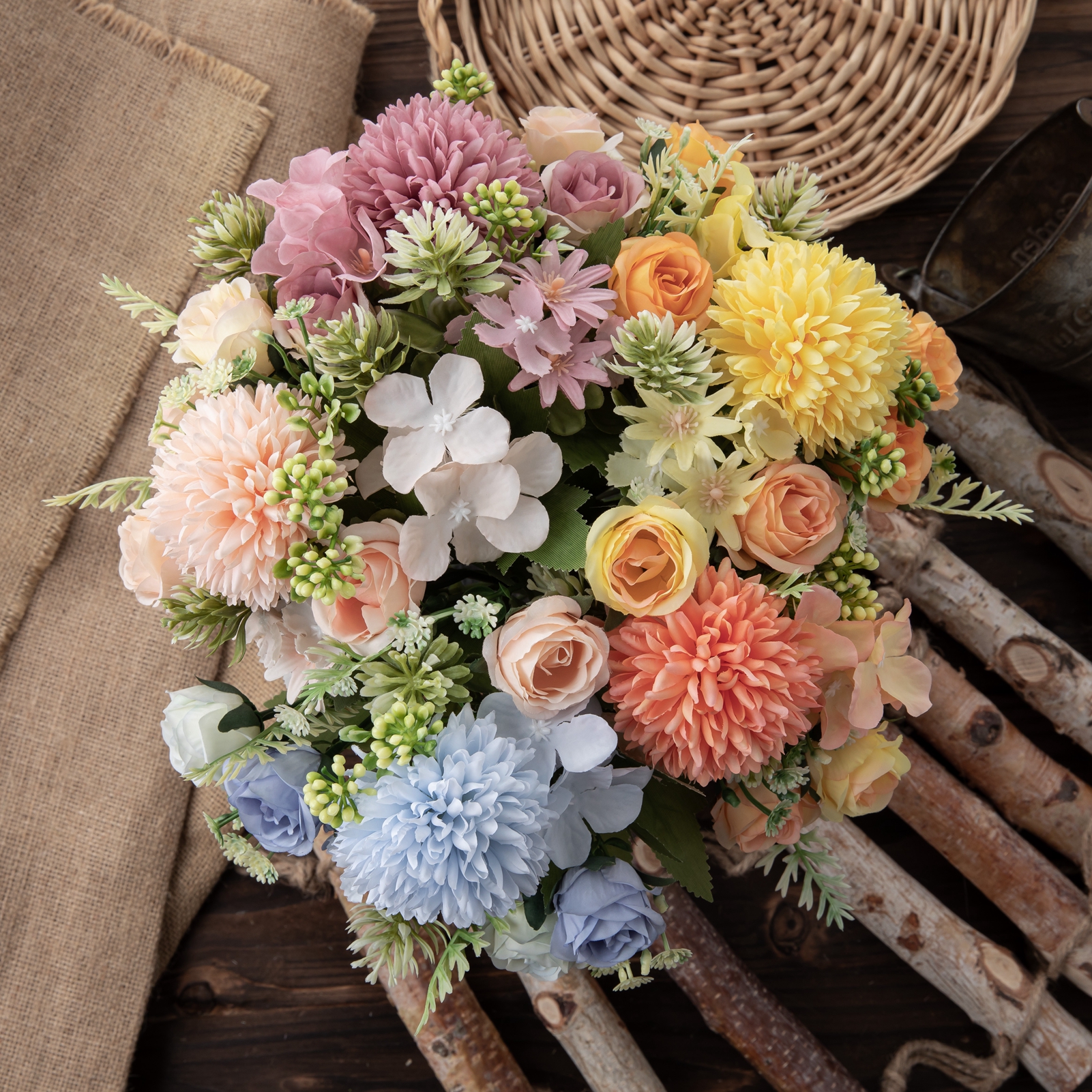 The MW55724 comes as a bundle, complete with five split ends, one chrysanthemum, two sets of rose heads, two sets of hydrangeas, and four sets of grass. This comprehensive package ensures that you have all the necessary elements to create a visually appealing and harmonious floral display.