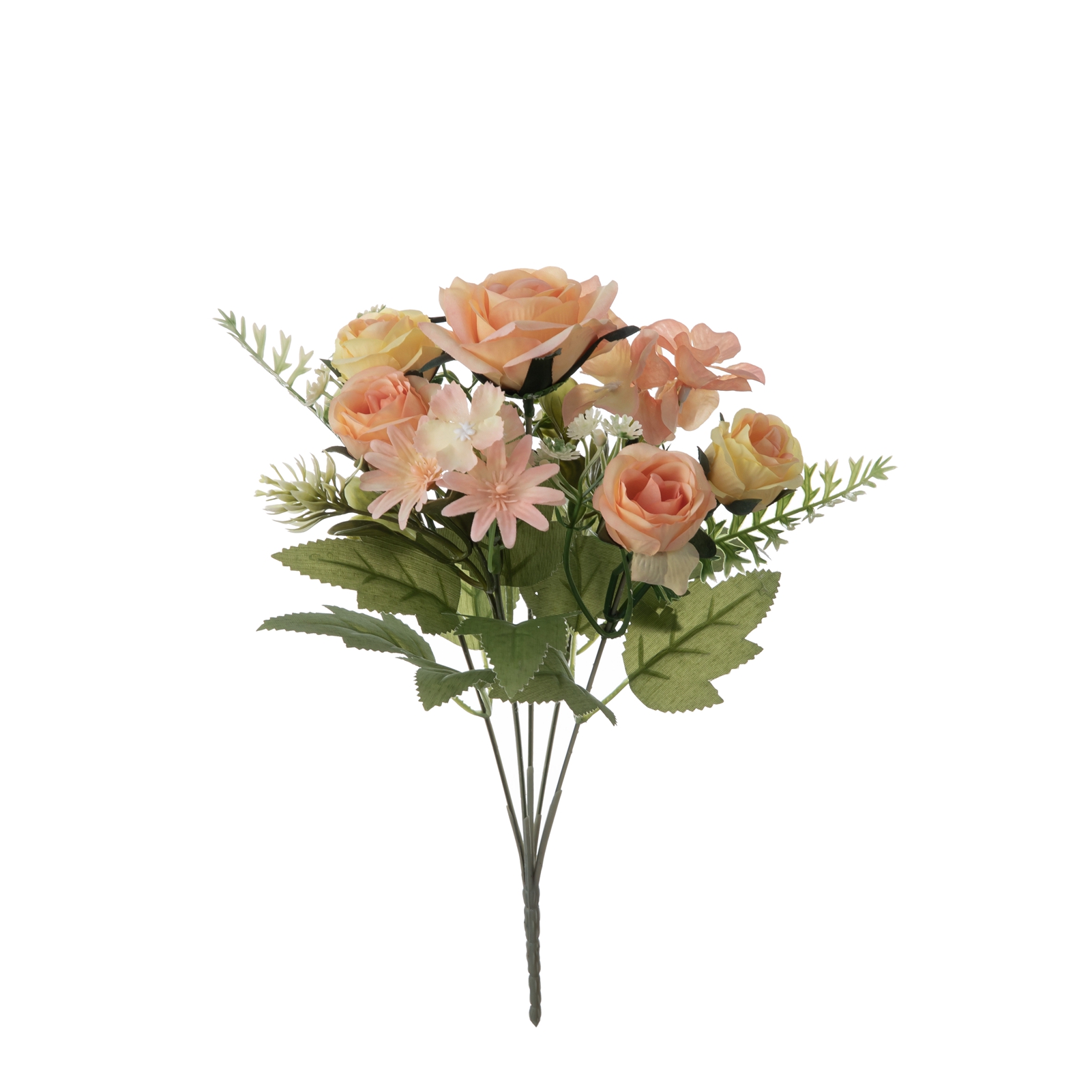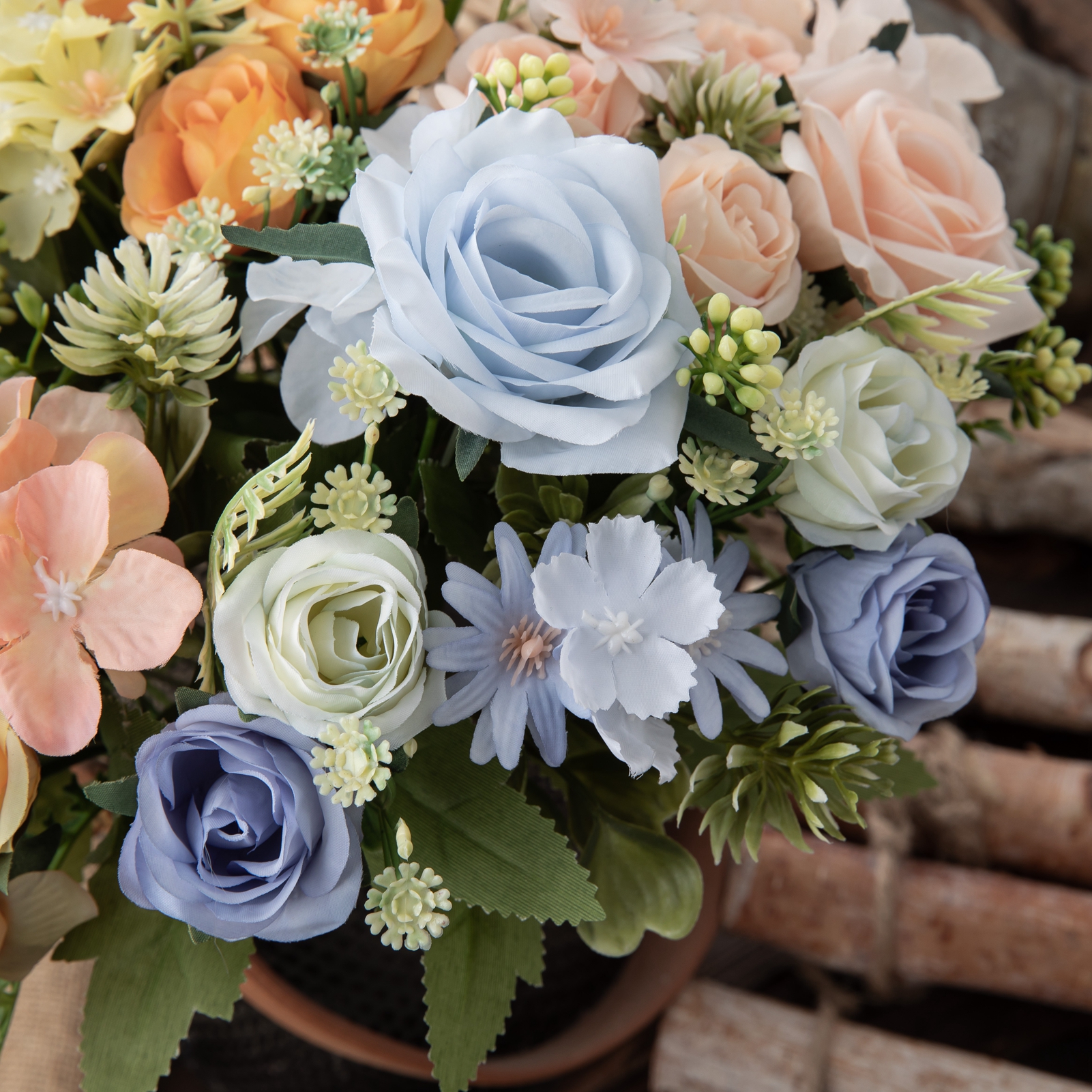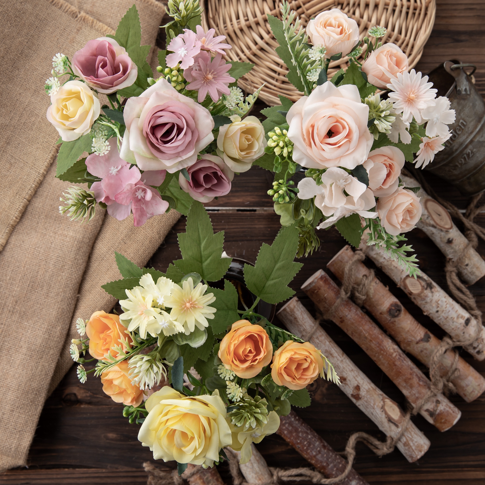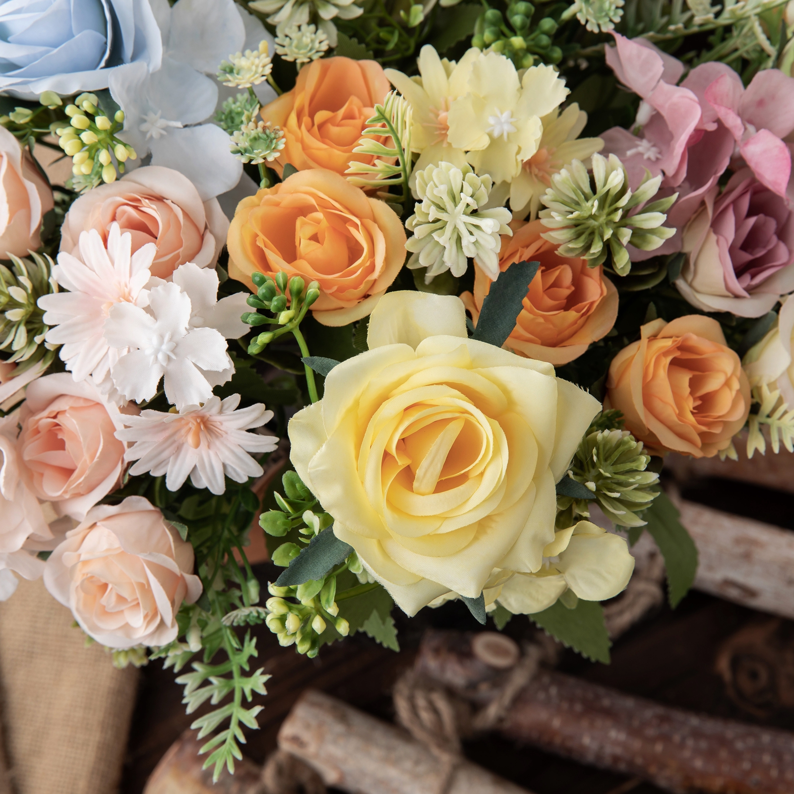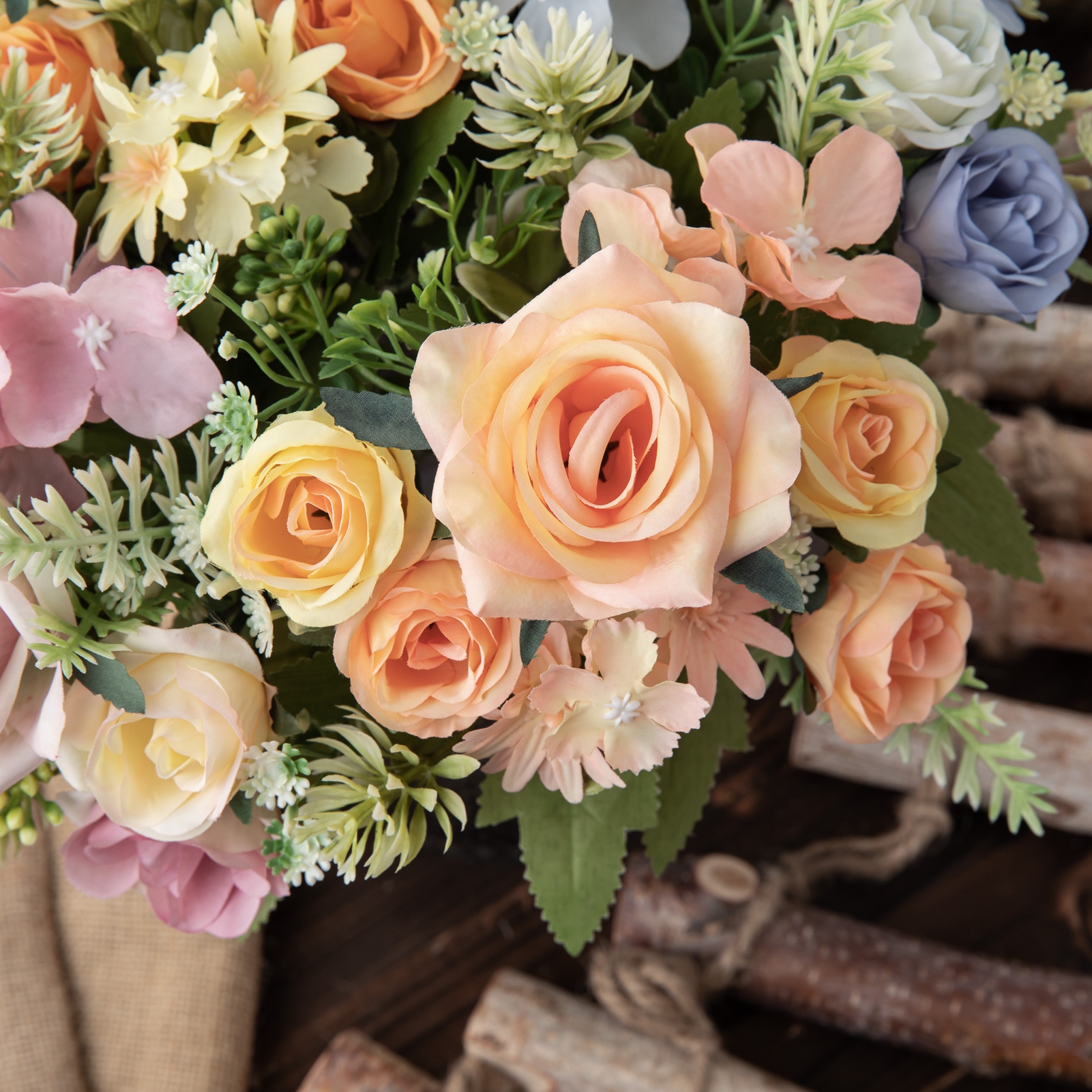 This ensemble of flowers and foliage is a testament to the finest artisanship, blending the warmth of handmade details with the precision of machine craftsmanship.