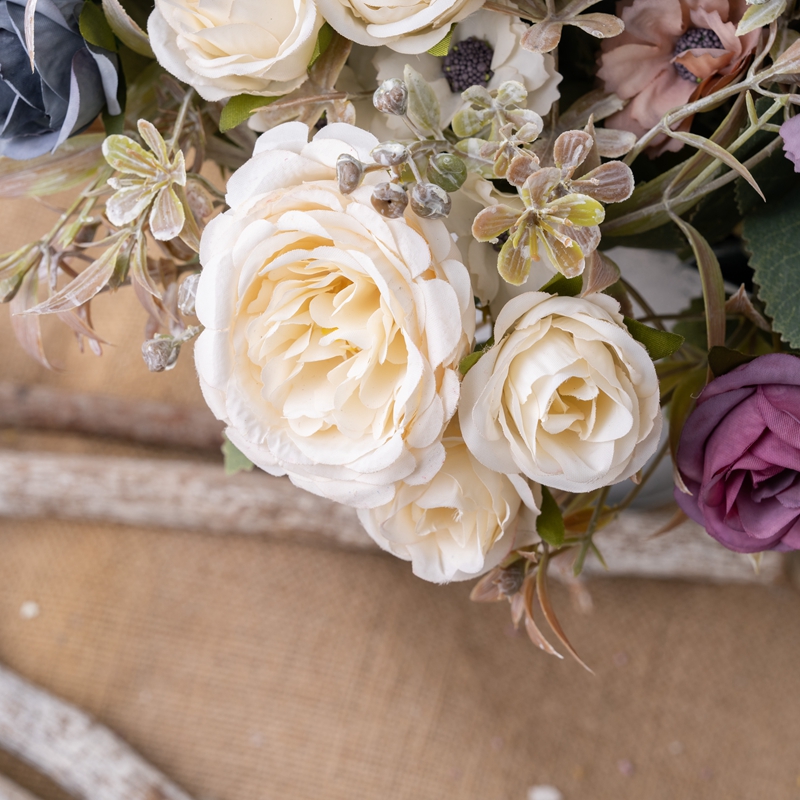 Standing at an impressive height of 30.5cm and boasting an overall diameter of 18cm, the MW55745 is a visual treat. The rosette, gracefully rising to a height of 3.5cm, is adorned with flower heads measuring 6cm in diameter, each petal exquisitely curled to perfection. The intricate details of the flowers, from their delicate textures to their vibrant colors, are a testament to the artisan's skill.