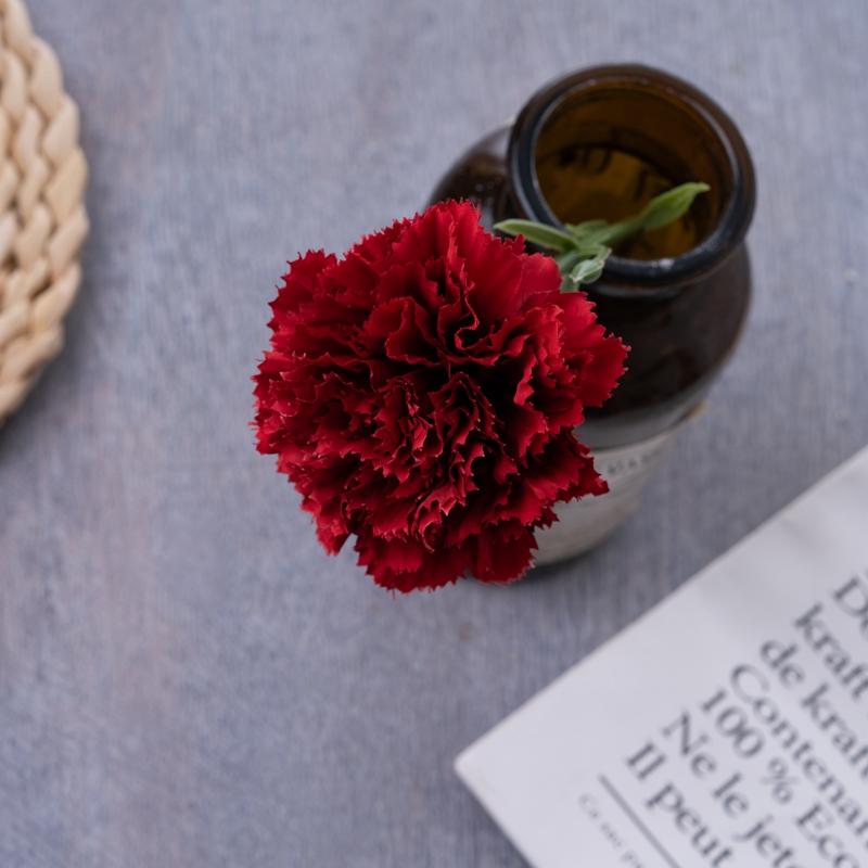 This short branch carnation, a masterpiece of craftsmanship and innovation, is a captivating blend of Fabric and Plastic, embodying both the warmth of natural materials and the durability of synthetic ones.