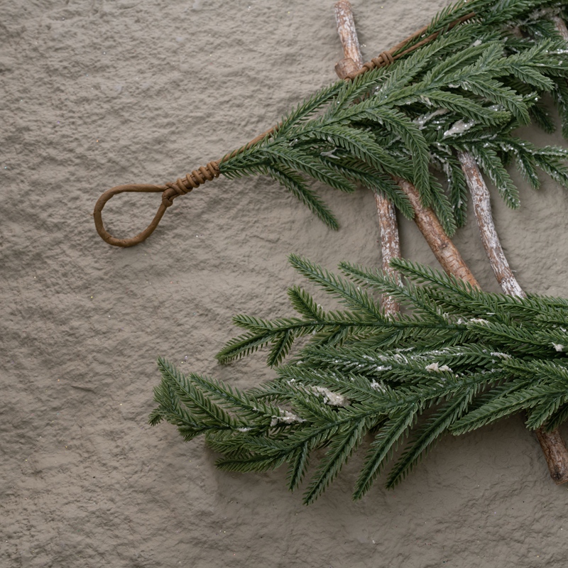 Imagine the MW61711 draped gracefully over a mantlepiece in your living room, its soft pine needles casting gentle shadows in the light, creating a serene and inviting atmosphere. Or envision it as a focal point in a hotel's reception area, where its natural beauty and sophisticated design welcome guests with warmth and elegance. In a wedding setting, the MW61711 serves as a romantic backdrop, adding a touch of whimsy and enchantment to the celebration. Its presence in an exhibition hall or supermarket transforms these spaces into more inviting and aesthetically pleasing environments, enhancing the overall experience for visitors.