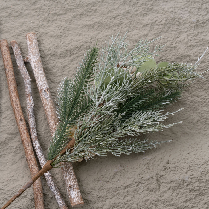 Imagine the MW61719 Berry Pinecone Single Branch perched atop a shelf, casting a warm glow as the soft light of a nearby lamp illuminates its intricate details. The pine needles, meticulously arranged, evoke the crisp scent of a winter forest, transporting you to a serene and peaceful place. The apple leaves, with their delicate veins and vibrant green hues, add a touch of life and freshness to the arrangement. The berries, plump and juicy, add a pop of color that complements the green and brown tones of the pine needles and cones. Together, they create a scene that is both inviting and enchanting.
