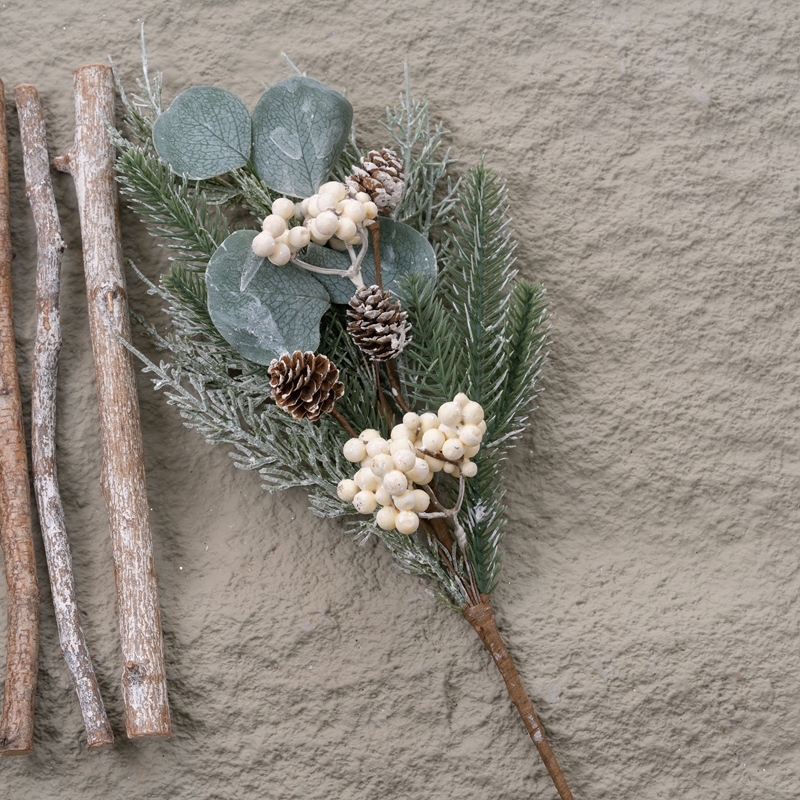 Hailing from the lush landscapes of Shandong, China, this exquisite branch stands proudly with an overall height of 46cm and a diameter of 18cm, priced as a singular entity that is composed of a harmonious blend of pine needles, apple leaves, berries, and pine cones.