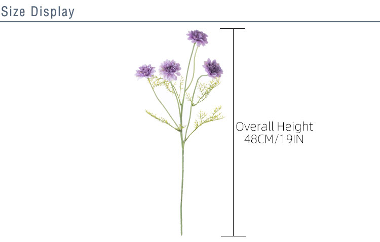 Crafted with a deft blend of 80% fabric, 10% plastic, and 10% iron, this chrysanthemum embodies the perfect harmony between the softness of nature and the durability of modern technology. Standing tall at 48cm, it showcases an exquisite flower head with a diameter of 4.5-5cm and a height of 2cm, each petal meticulously crafted to mimic the intricate beauty of the real thing.
