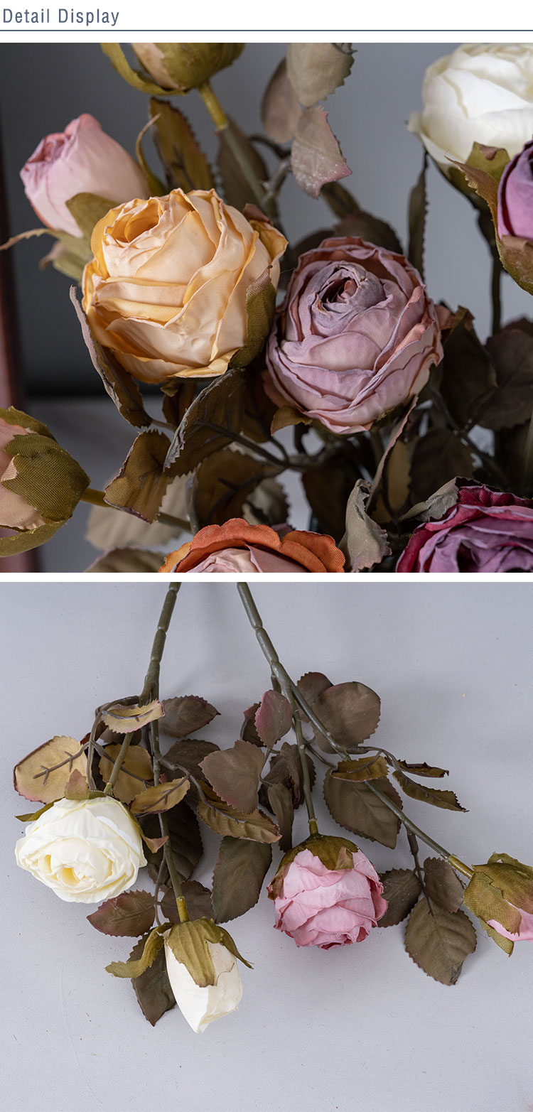MW66014 Cheaper Artificial Silk Rose Single Stem Flower With Burned Effect For Wedding Centrepiece Party Decoration