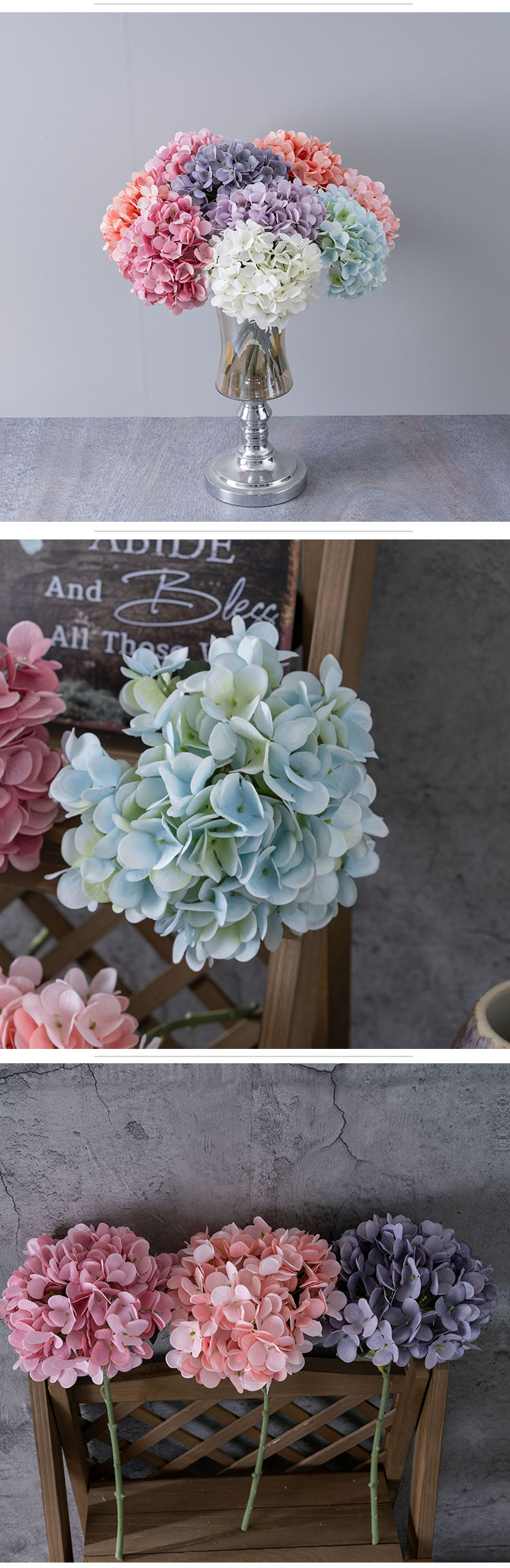 The design is newly created, making these flowers a unique and trendy choice. The keywords "hydrangea artificial flower" perfectly describe these beautiful preserved flowers and plants.Whether it's a wedding or any other special occasion, these artificial hydrangea flowers are sure to impress. With their realistic look, lightweight design, and versatile usage, they are a must-have for anyone looking to add a touch of beauty to their surroundings.
