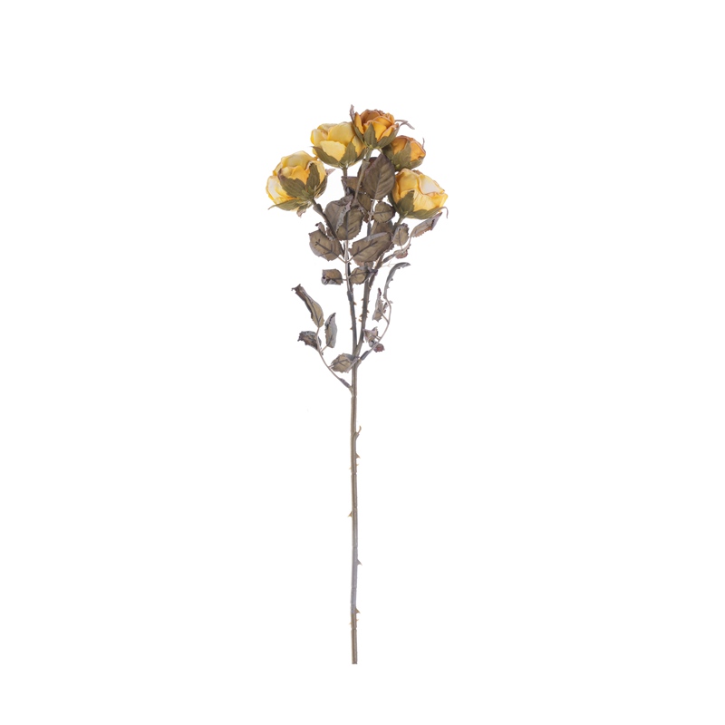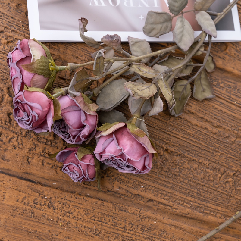 This masterpiece, Three Flowers Two Buds Dried Rose Single Branch, stands as a testament to the harmonious blend of traditional handmade artistry and modern machinery, encapsulated in a single, breathtaking design.