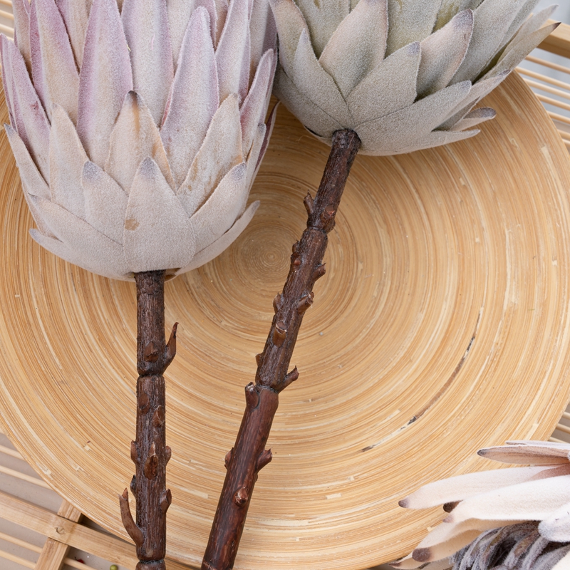 The MW69523 Single Protea is offered in a range of colors that cater to diverse tastes and interior design schemes. Ivory, pink, brown, green, and dark red are just a few of the available options, allowing customers to choose the perfect hue to complement their space and enhance its overall aesthetics.