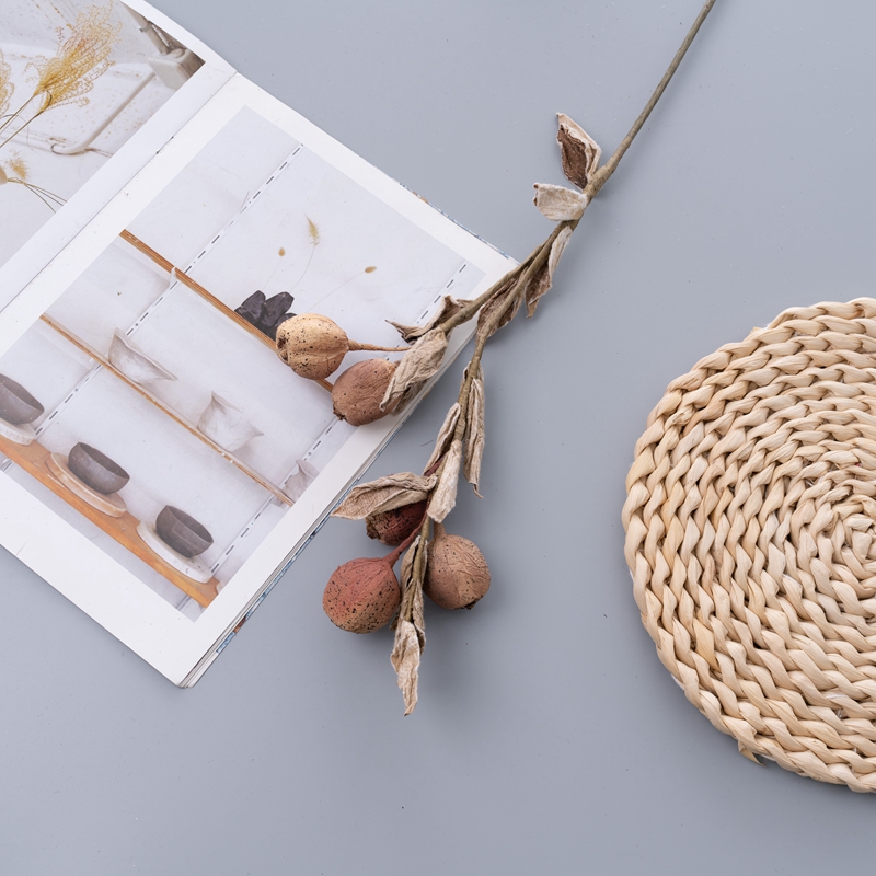 At the heart of the MW89508 lies a meticulously crafted branch adorned with five dazzling poppy fruits, each boasting a diameter of 3cm. These fruits, along with their matching leaves, have been meticulously handcrafted and enhanced with machine precision, resulting in a seamless blend of traditional craftsmanship and modern technology.