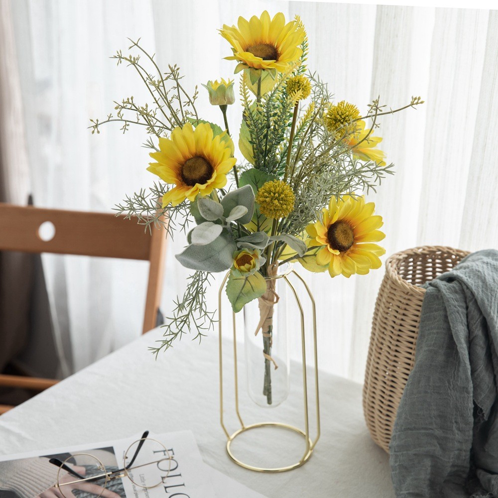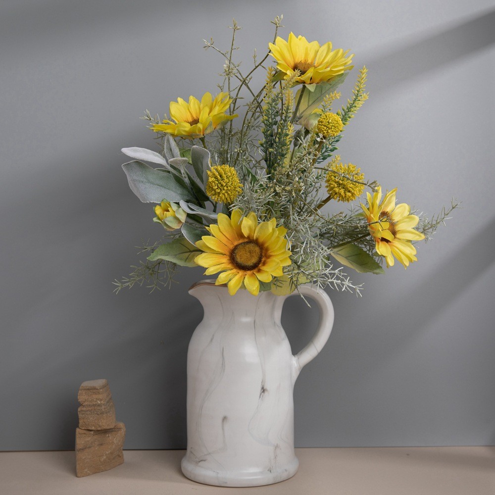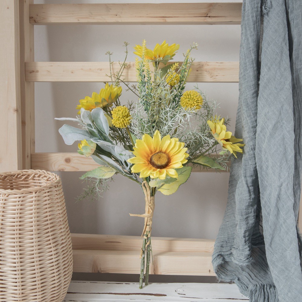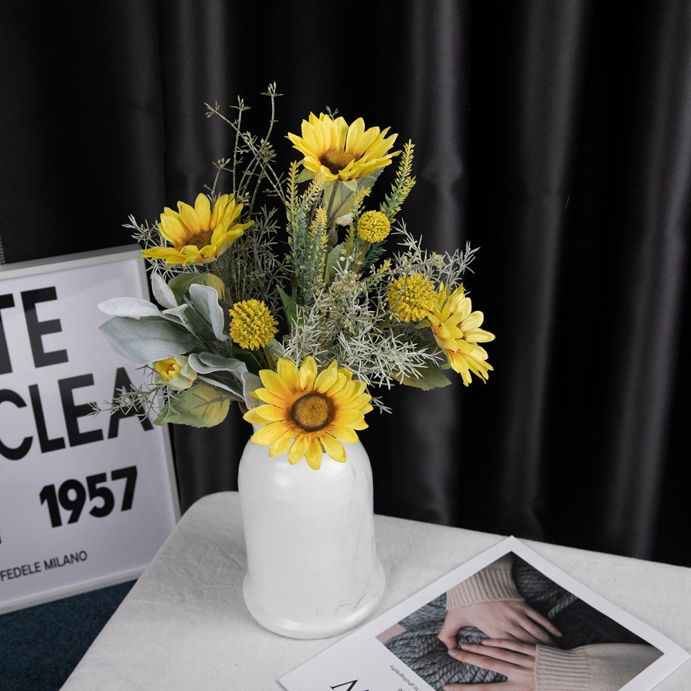 The Sunflower Prickly Ball bouquet is a vibrant ornament inspired by a combination of bright sunflowers and succulents, bringing the freshness and warmth of nature into our homes. Whenever I walked into the house and saw the bright bouquet of sunflowers, my mood could not help but become relaxed. It is as if I were in a sunny field, feeling the breeze on my face and the flowers of the birds singing. Whether placed in the living room, dining table or bedroom, it can bring a little fresh and cozy to the entire space. Let the artificial sunflower flower bouquet accompany you and bring a fresh comfort to your life. Let you in the busy, have a sunny mood.
