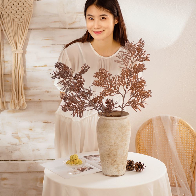 The stems of the bouquet are made of a strong and flexible material, wrapped in simulated bark, which feels real to the touch and can be bent to your liking for easy placement in different scenes. Whether it is placed indoors as a long-term decoration, or occasionally get the outdoor photo card, it can always maintain a perfect state, continue to bring natural wild interest to life, do not worry about like the real pine branches will dry and wither, really achieve a purchase, long-term enjoyment.