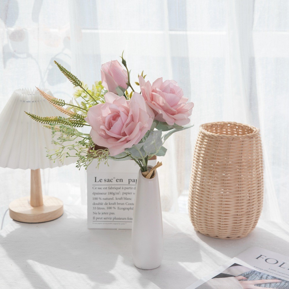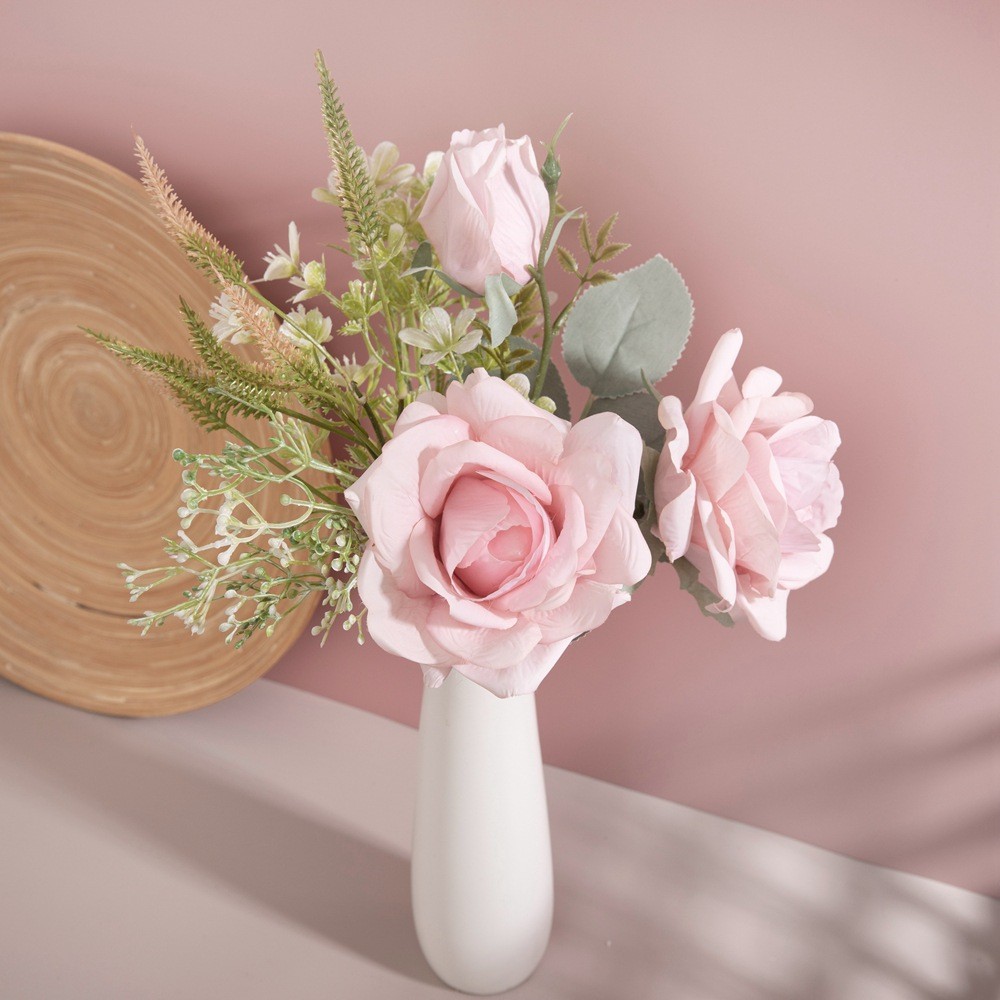 The roses in the bouquet, like those quiet moments in the years, bloom with a light and elegant light. Each petal is like soft velvet, and its warmth and tenderness can be felt when touched. Placed in the home, as if back to the quiet country cottage, there is a feeling of nature and innocence. The beauty of an artificial rose bouquet is not only in its appearance, but also in the emotion it conveys. Their calm posture adds a sense of romance and poetry to the home, making it warmer and more livable. Home is a haven for us to relax, and a bouquet of delicate simulation roses can not only decorate the room, but also the integration of flowers and home environment can make people relax.