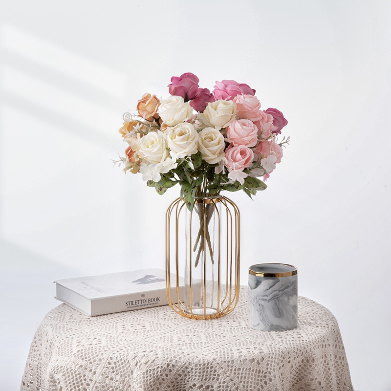 This six-pronged bouquet of roses is placed on the coffee table in the living room to instantly inject a romantic atmosphere into the entire space. It complements the simple Nordic style furniture, and the gorgeous rose adds a warm bright color to the cool environment, making the living room a romantic corner for families to gather and enjoy warm time.
