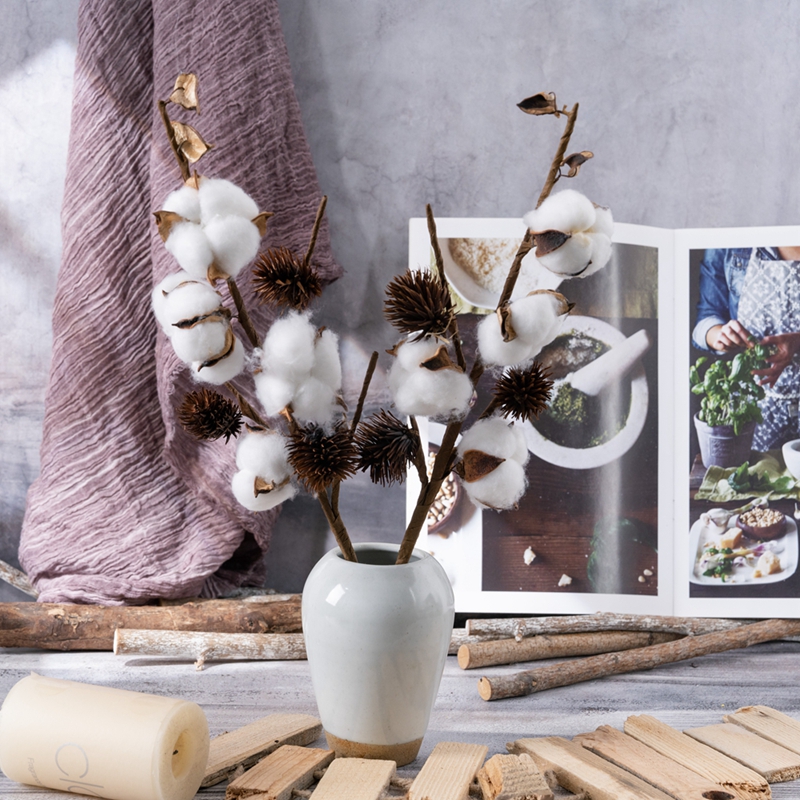 The dried four-headed cotton branches, with their unique charm, demonstrate strong adaptability and creativity in spatial matching, adding a simple and romantic atmosphere to Spaces of various styles.