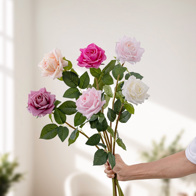In this complex and diverse world, we always long for a pure tenderness, a touch that can instantly calm our restlessness. The emergence of the single-head moist-textured fabric rose precisely fills this gap. It uses fabric as the medium, meticulously replicating the beauty of the rose with exquisite craftsmanship.