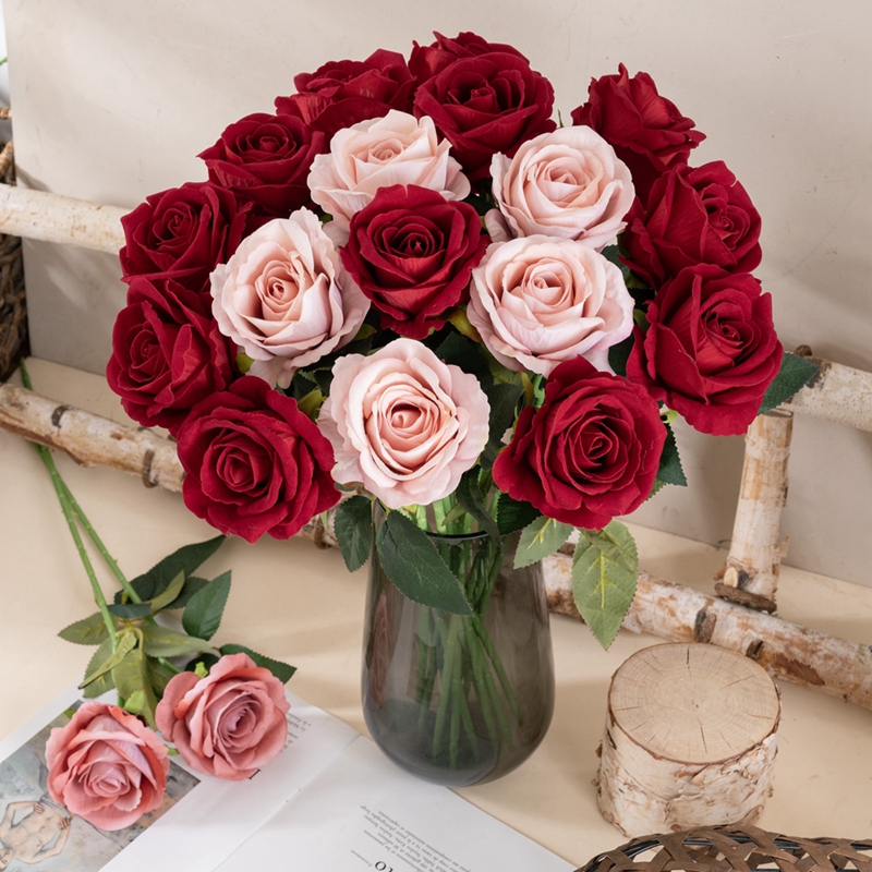 The core highlight of the single stem velvet rose branch lies in its richly textured velvet material and realistic design. It is made with high quality velvet to create the petals, which have a delicate and soft touch. The petals are layered and each one has been meticulously shaped to restore the elegant posture of the blooming rose. The stem is made of highly resilient iron wire, which not only feels real but also can be bent and adjusted at will to fit different vase and tabletop arrangements. Each color tone is gentle and not harsh, easily blending into various tabletop styles.