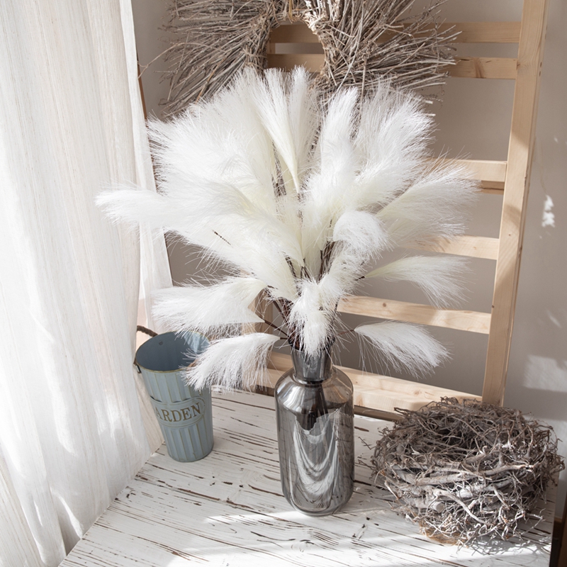 If you want to enhance the sense of depth in the space, you can arrange two or three single stemmed three headed Pampean grasses of different heights in a staggered manner. This way, there is both an orderly arrangement and a natural and rustic charm.Simply insert it into the bouquet, and it will add a fluffy and sophisticated touch to the overall look.