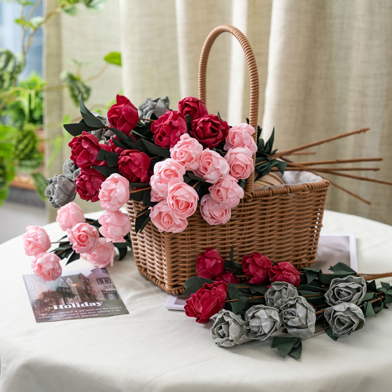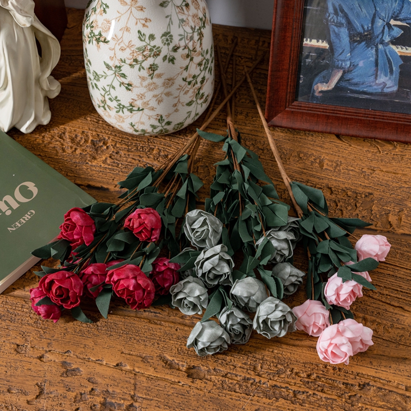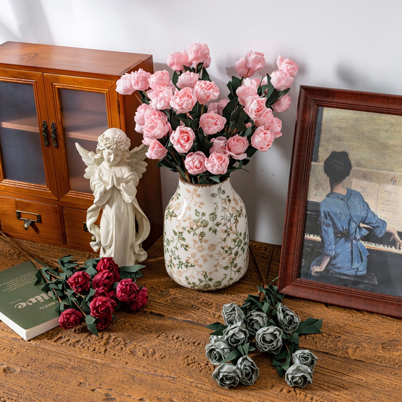 The six PE rose branches require no special care and can remain fresh for a long time. They always remain at their most beautiful blooming state. Just occasionally, gently wipe the dust off the petals and leaves with a damp cloth, and they will instantly regain their cleanliness and brightness, just as they were when first seen.It’s not about expensive ornaments or elaborate designs, but rather about placing the perfect beauty in the right details.