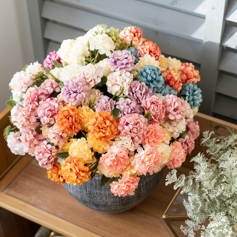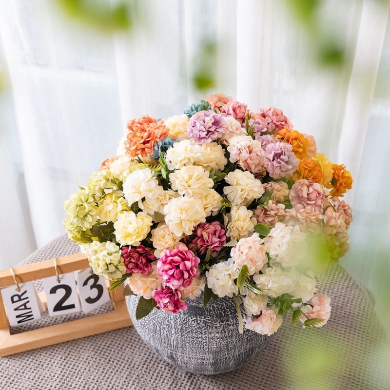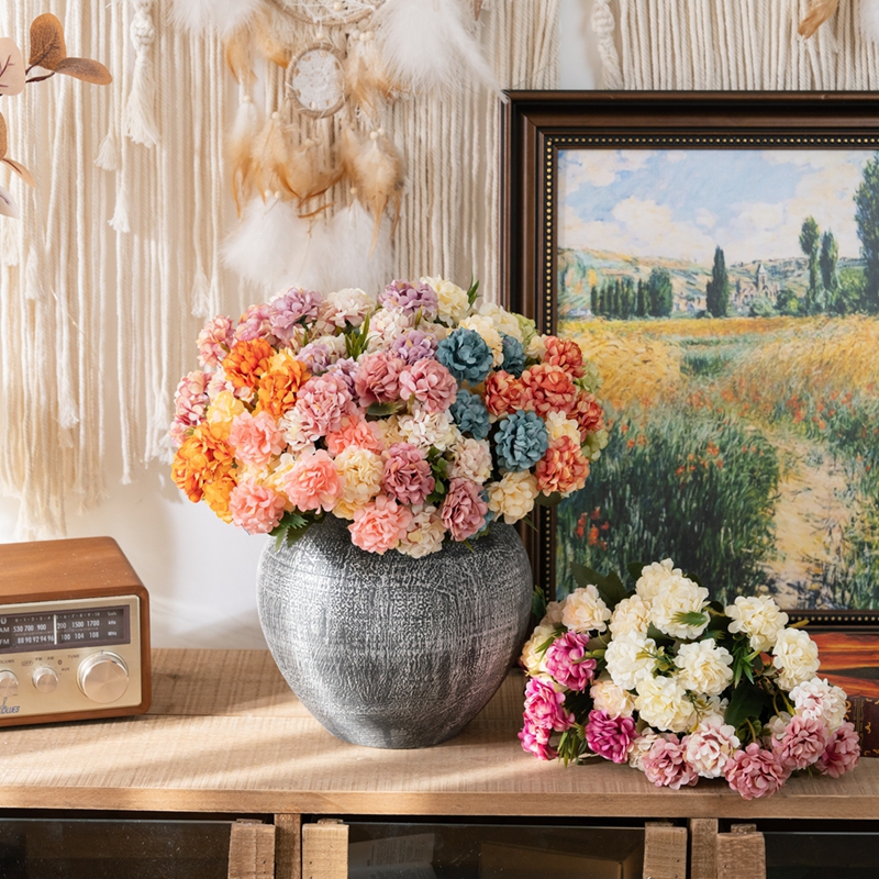 Every single chrysanthemum in the bouquet was made to look real. The flowers are round, like a carefully carved small pompoms, and the delicate petals are clustered in layers, close and orderly. Looking closely, the texture of the petals is clearly visible, and the texture seems to be really woven by nature. The color is rich and diverse, these chrysanthemum perfectly engraved the true flower of the smart and delicate, but there is no real flower easy to wither the trouble, always maintain the best posture.