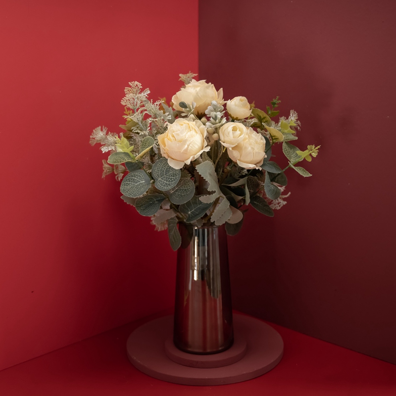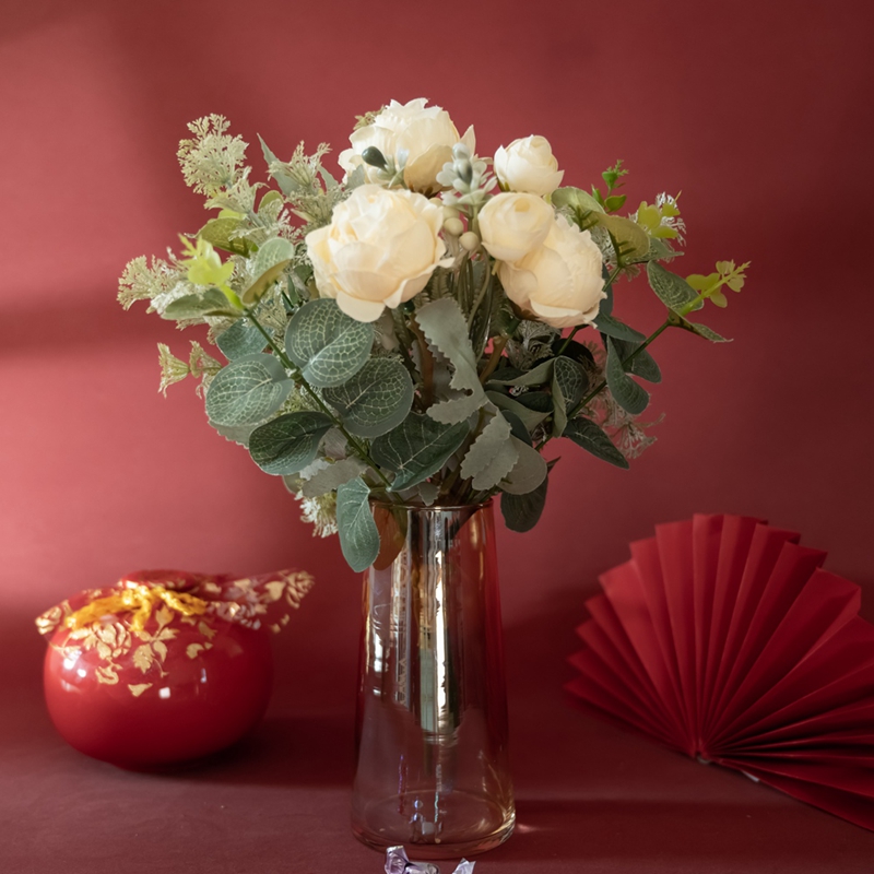 Its adaptability is exceptional and can be easily integrated into a variety of home styles. If your home is simple and modern style, this bouquet can add a touch of softness and vitality to the simple space, so that the home is simple without losing the warmth; If the Nordic wind home environment, the fresh tea rose and the nature of money leaves, perfectly fit the Nordic wind of nature, simple and comfortable pursuit, to create a warm and fashionable living atmosphere.