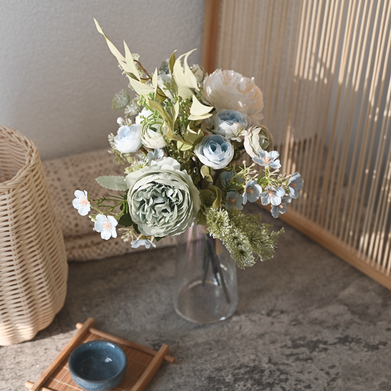 As the seasons change, people’s longing for spring never ceases. They always hope to keep that freshness, softness and vitality for a long time in their daily living spaces. And a carefully arranged bouquet of flowers can not only preserve the beautiful posture of spring, but also requires no effort to maintain.It becomes a gentle and practical choice in modern home interior decoration. The tea rose, tea bud, small chrysanthemum and leaf grass bundle are combined with delicate and soft flower materials and have a natural and fresh overall shape.