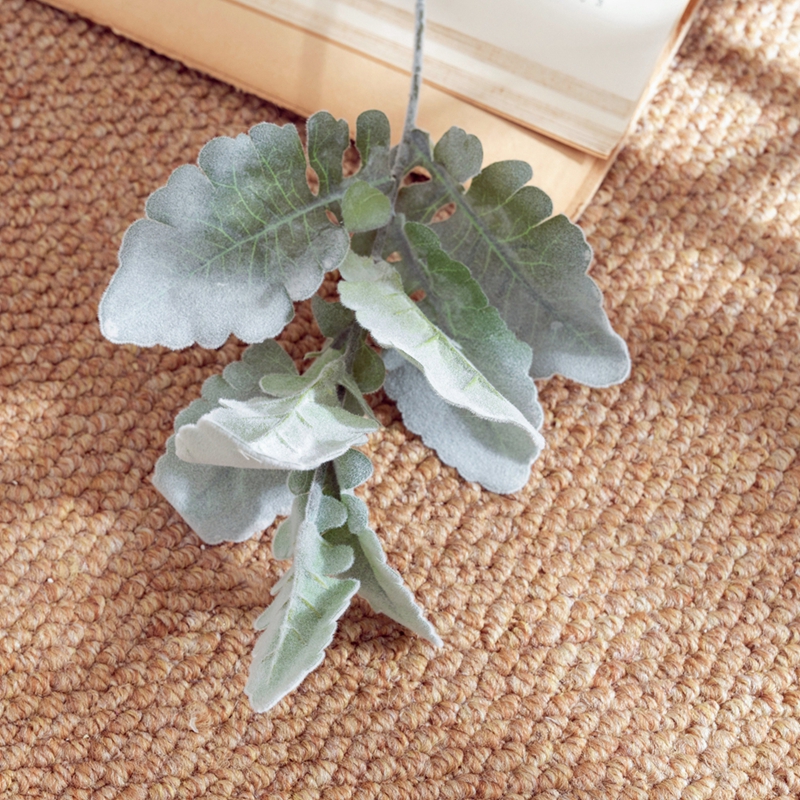 The creation of an elegant texture begins with the ingenious combination of flowers and materials. This fabric, featuring green silver-leaved chrysanthemums with leaf stems, has perfectly demonstrated this combination to the utmost. Silver leaved chrysanthemums, as the texture experts in the floral art world, have leaves with fine white hairs, presenting a unique silver green hue.