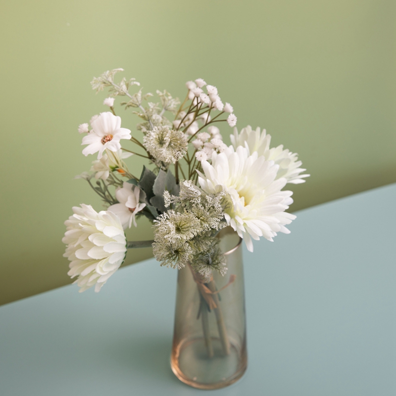 When a bouquet of dahlias and starflowers appeared before my eyes, the first thing that struck me was the vitality that transcends reality and imitation. The sprawling petals of the dahlias are adorned with vibrant colors, like a radiant sun rising towards the sky; the delicate flower buds of the starflowers are densely clustered on the branches, just like the twinkling stars in the night sky. The combination of these two flower materials creates a perfect visual balance, becoming a special carrier that can accompany daily life and convey emotions.