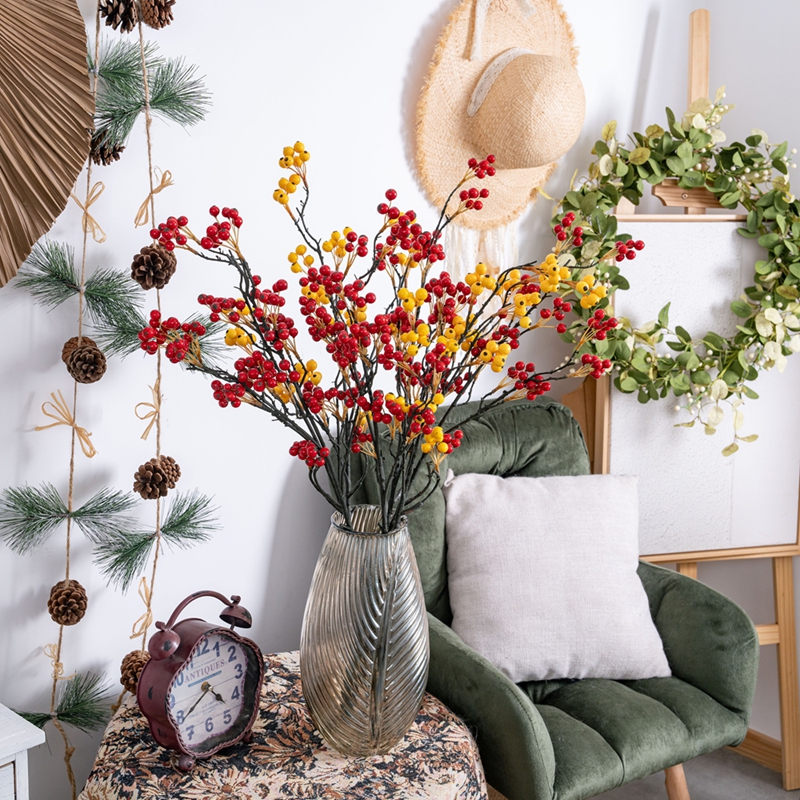 In the world of decorative elements, there are always some items that can not only hold their own in lively festival settings but also blend seamlessly into the mundane daily life, adding unexpected beauty to our lives. The small holly berry branch is such an existence. It carries the freshness and vitality of nature while also embodying the warm and festive atmosphere. Whether placed in a corner of the daily home or used in the decoration of a festival scene, it can perfectly adapt, bringing a just-right sense of beauty that turns ordinary days poetic and adds warmth to lively festivals.