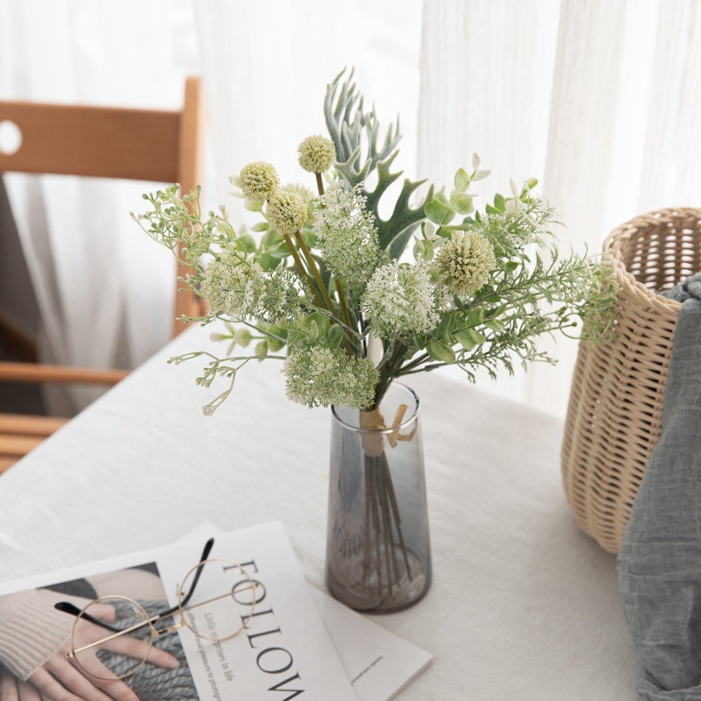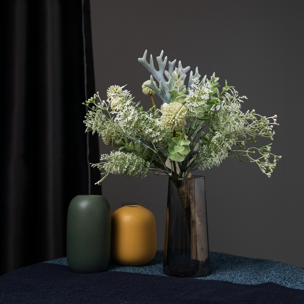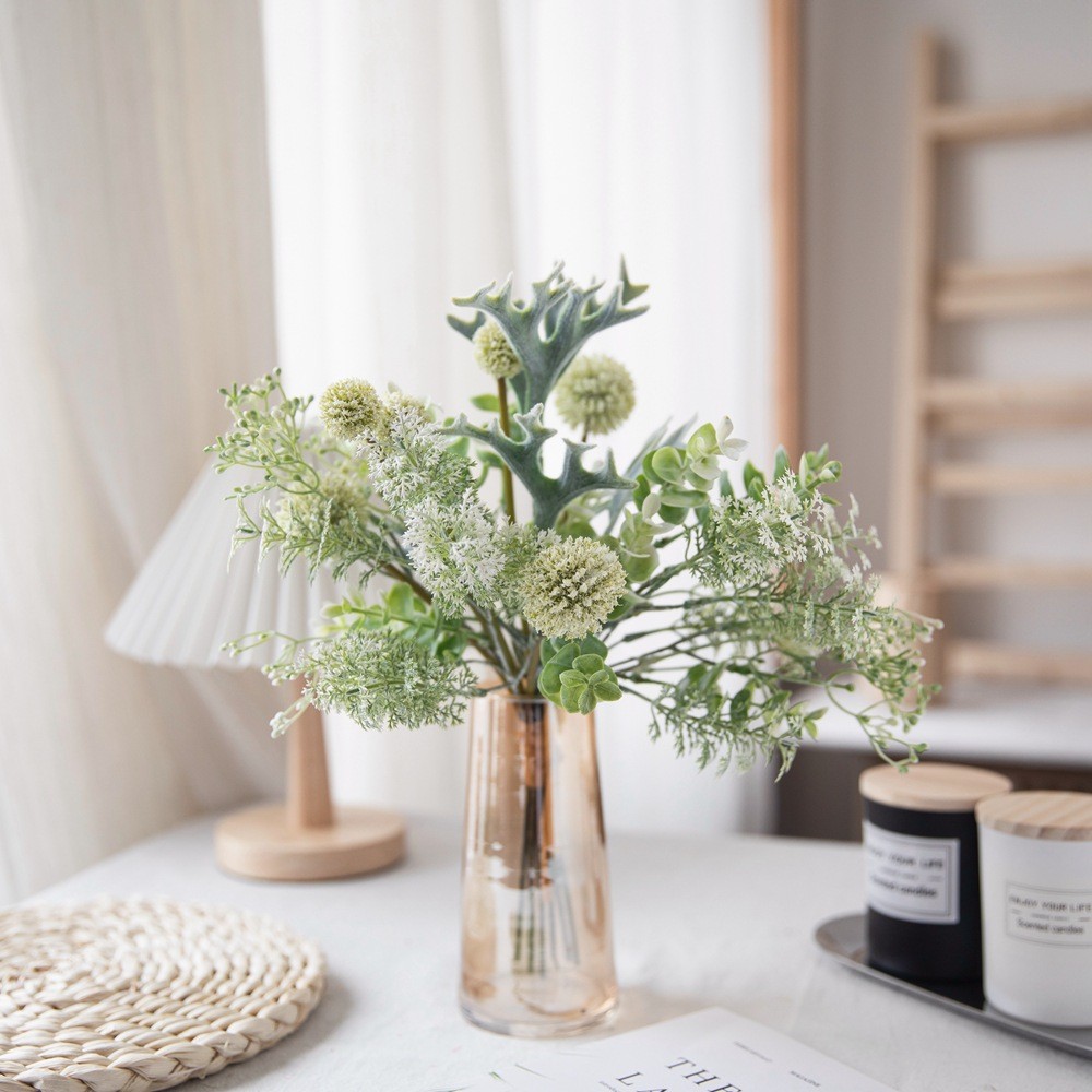 Simulation antler leaf thorn ball bundle, like the spirit of nature, for our home life to bring fresh breath and beautiful decoration. With their unique posture and green color, they break the boredom of the home, so that we can feel the gift of nature in every moment. These exquisite bundles, composed of artificial antler thorn balls, interpret the true meaning of natural beauty with elegant posture and chic form. Placing them in the living room, dining room or bedroom can immediately enhance the natural atmosphere of the space and make the home full of vitality. These artificial flower bouquets, like the artists of nature, use their forms and colors to tell the beauty and peace of life.