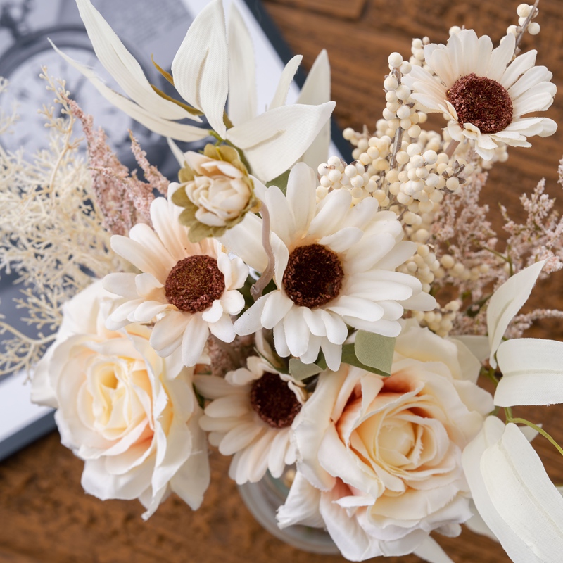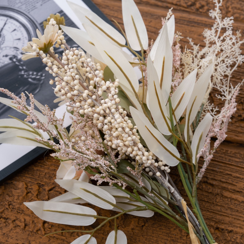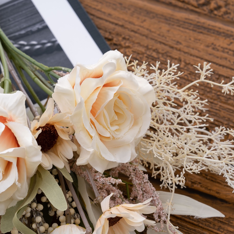 The versatility of this bouquet is unparalleled, making it the perfect choice for a myriad of occasions. Whether you're looking to add a touch of sophistication to your bedroom, create a welcoming ambiance in your hotel's reception area, or adorn the exhibition hall with a touch of nature's finesse, the PL24029 Rose Chrysanthemum Bamboo Leaves Dried Bouquet is the answer. It seamlessly blends into any setting, enhancing the ambience and leaving a lasting impression.