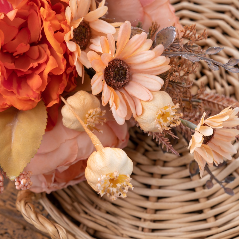 The PL24035 stands at an overall height of 33cm and boasts a diameter of 18cm, making it a perfect fit for a variety of settings. The delicate balance of size and proportion ensures that this bouquet commands attention without overwhelming its surroundings. Each floral element within this arrangement is meticulously chosen and arranged to create a harmonious and visually appealing composition.